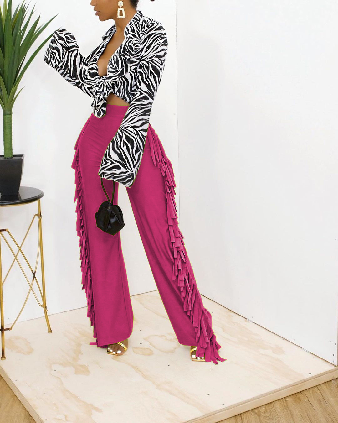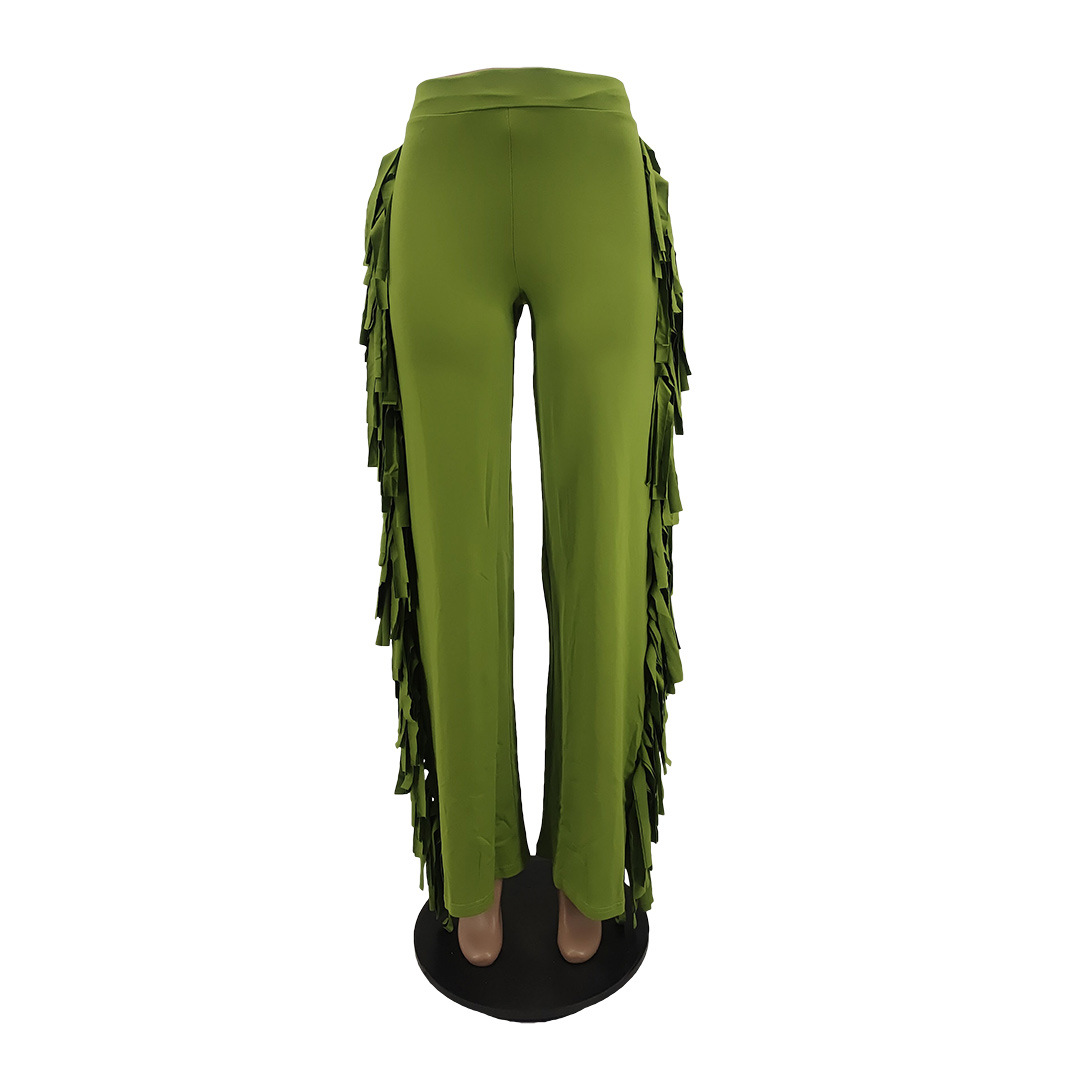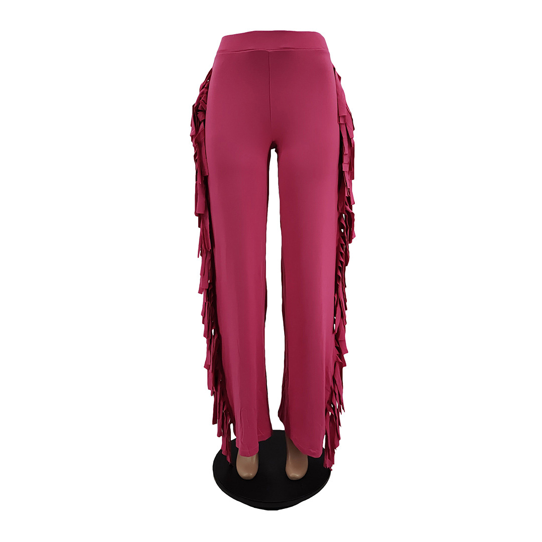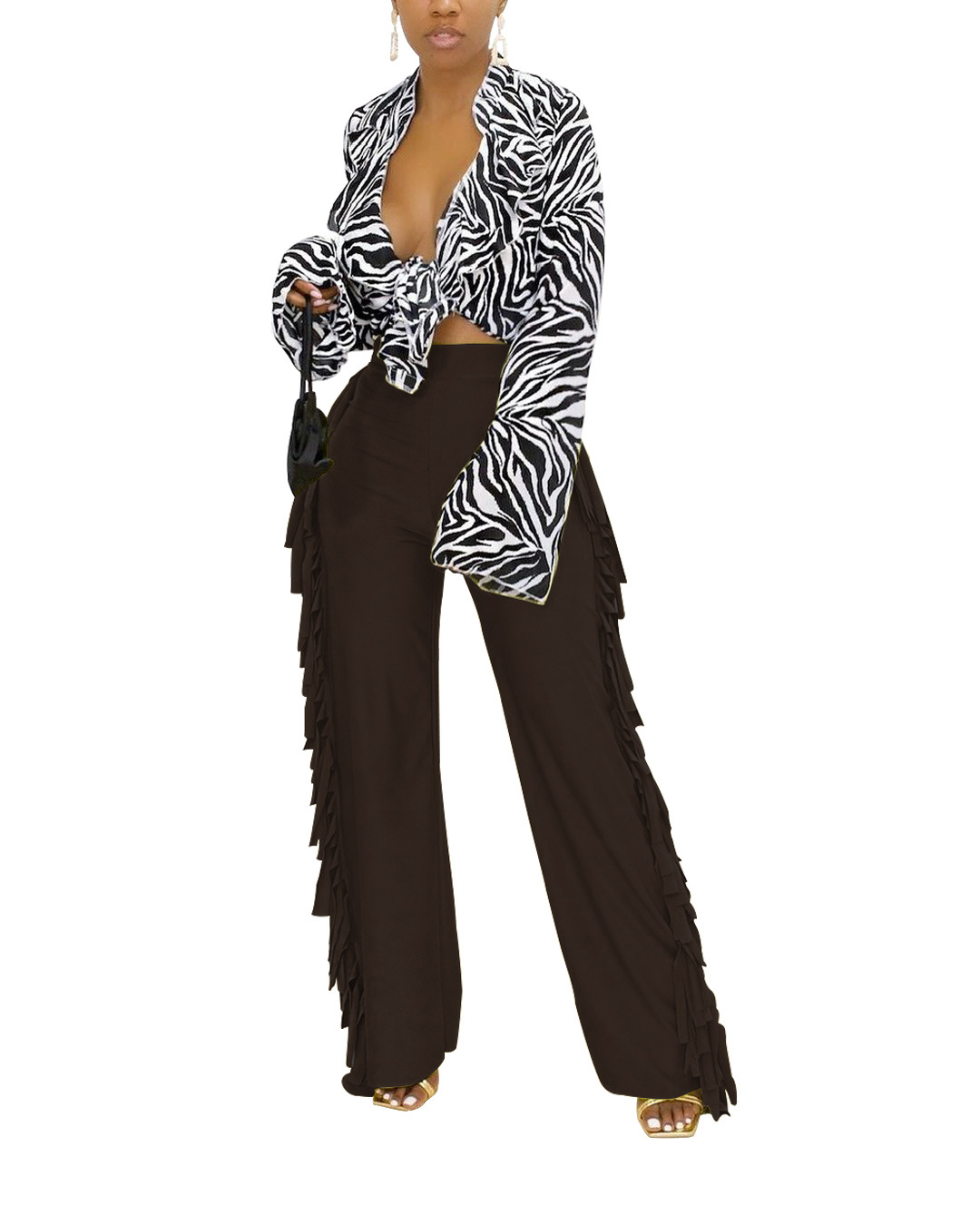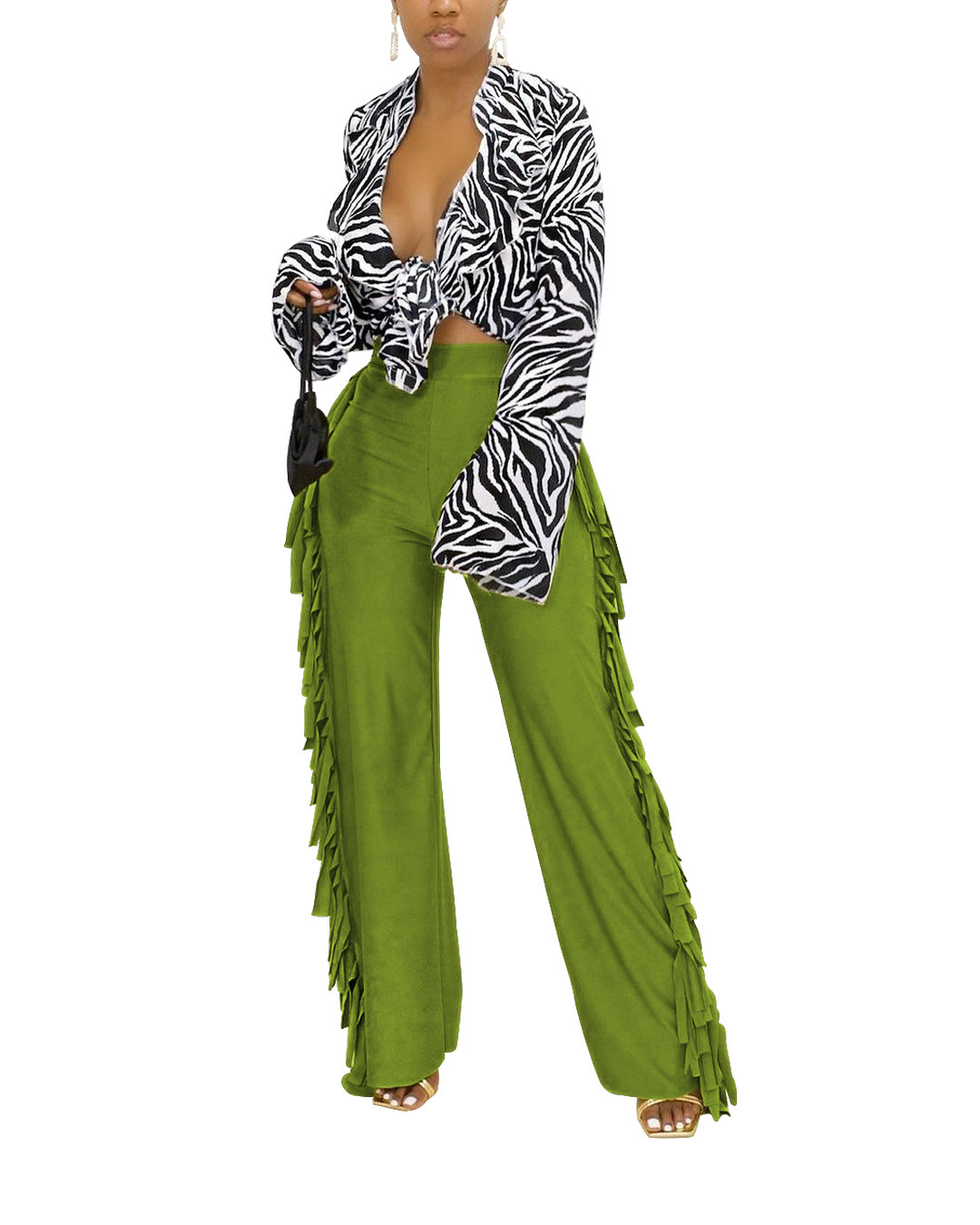 Women Brushed Cute Straight Wide-Leg Pants with Tassel on Both Sides