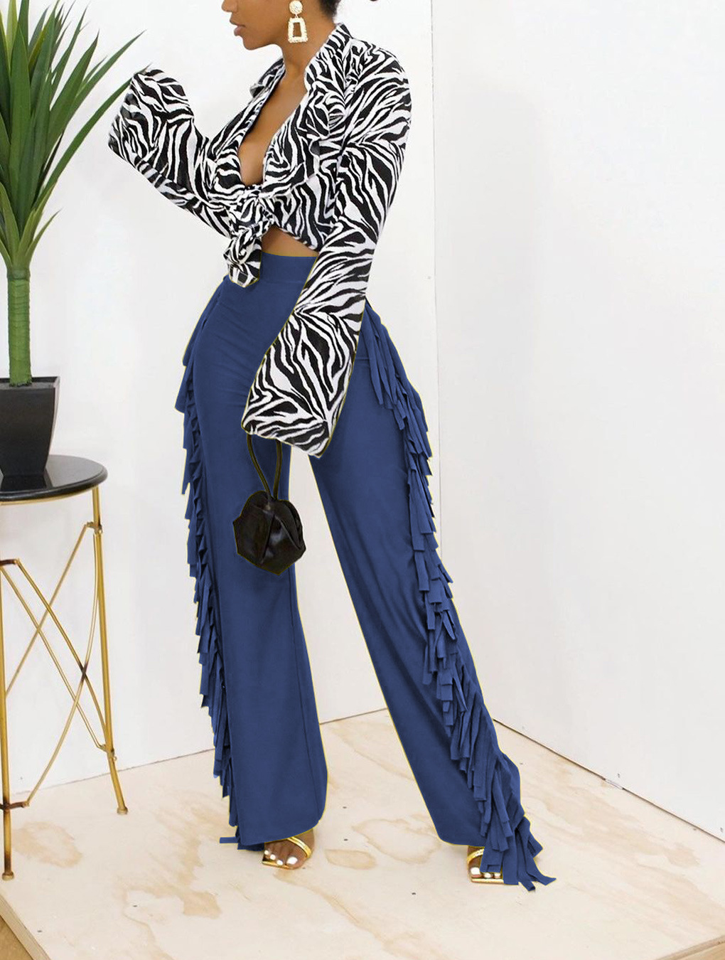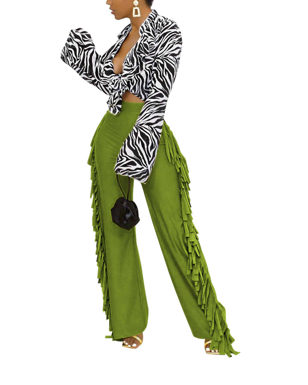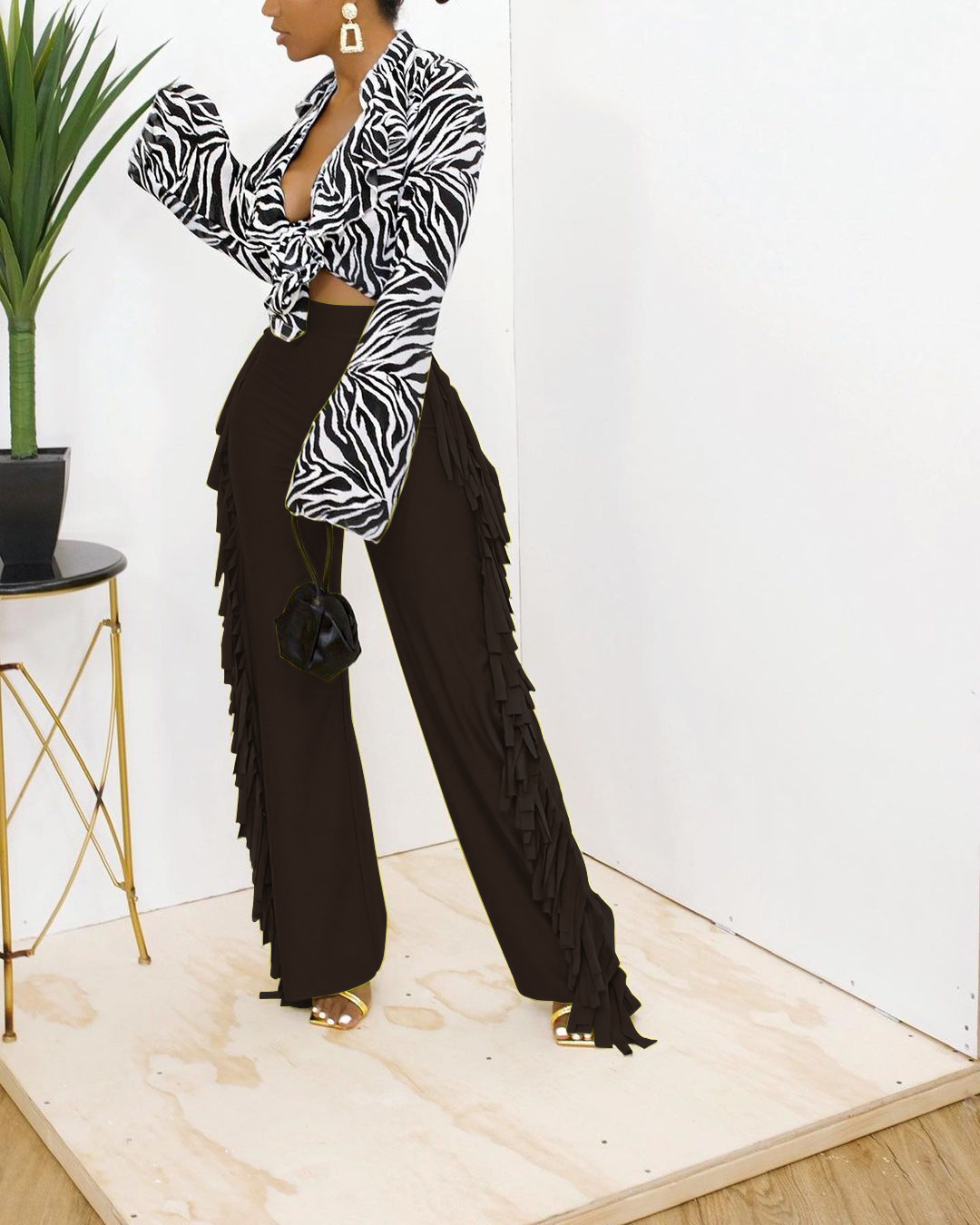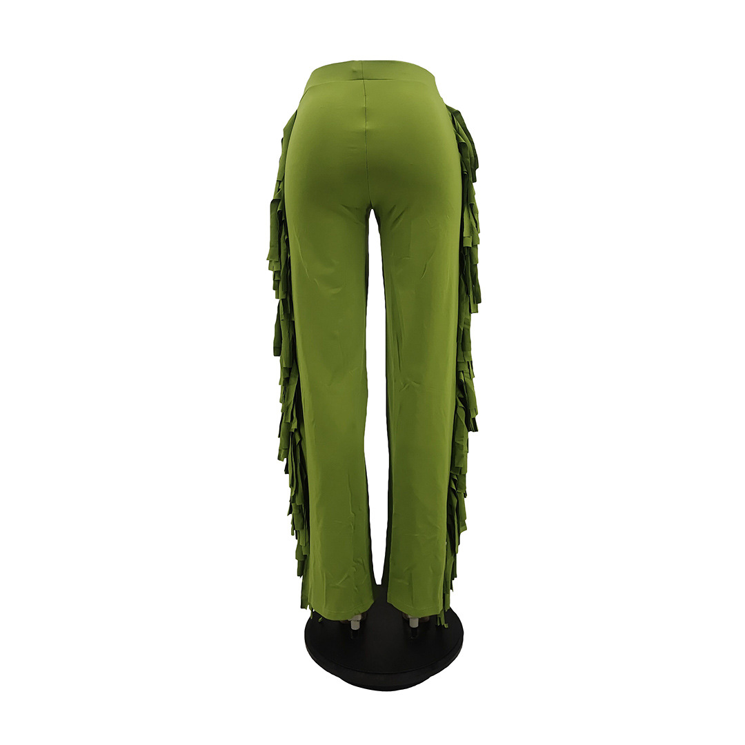 Women Brushed Cute Straight Wide-Leg Pants with Tassel on Both Sides