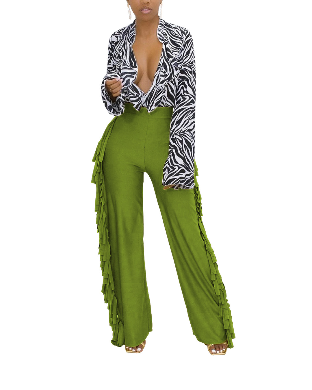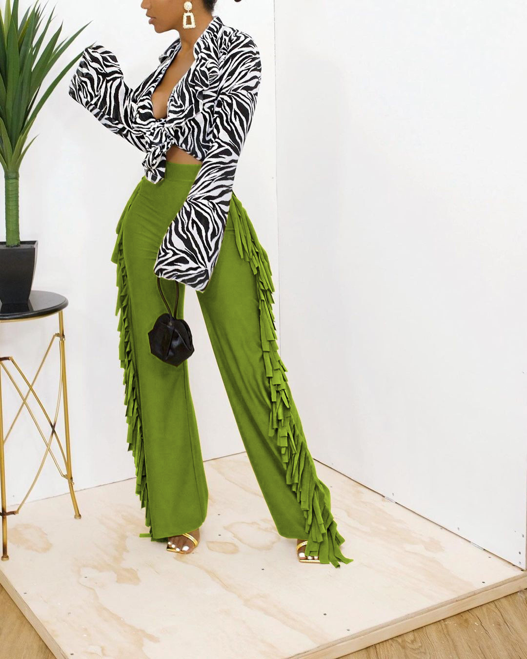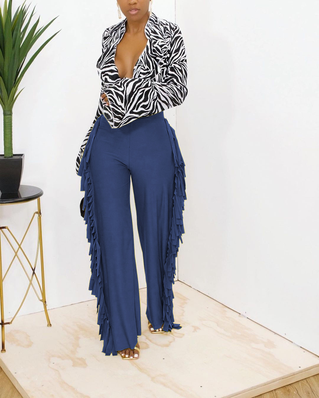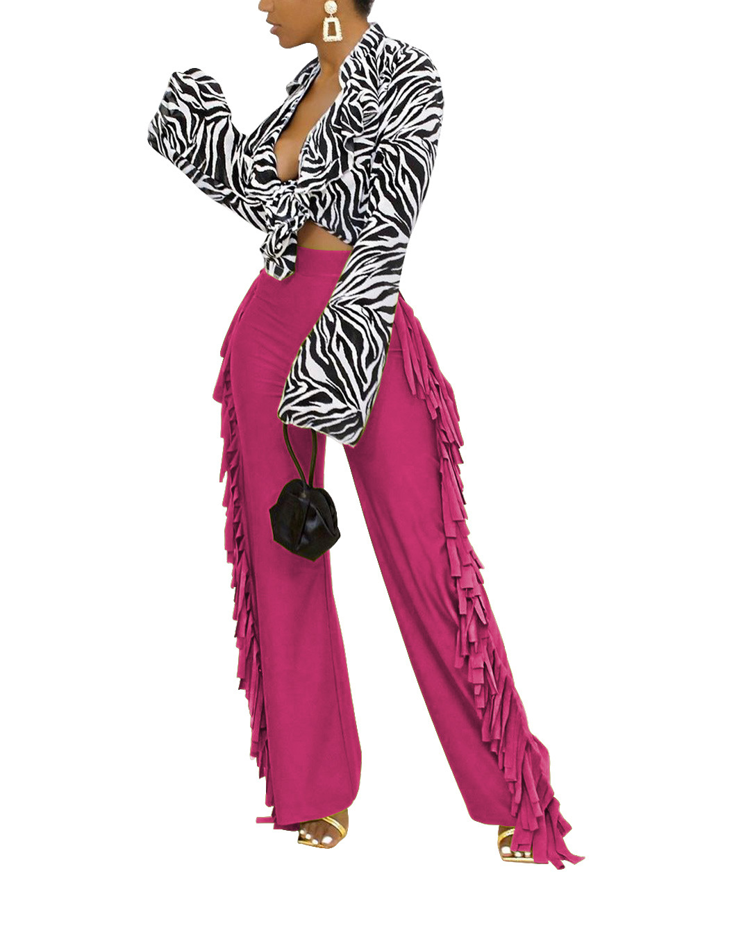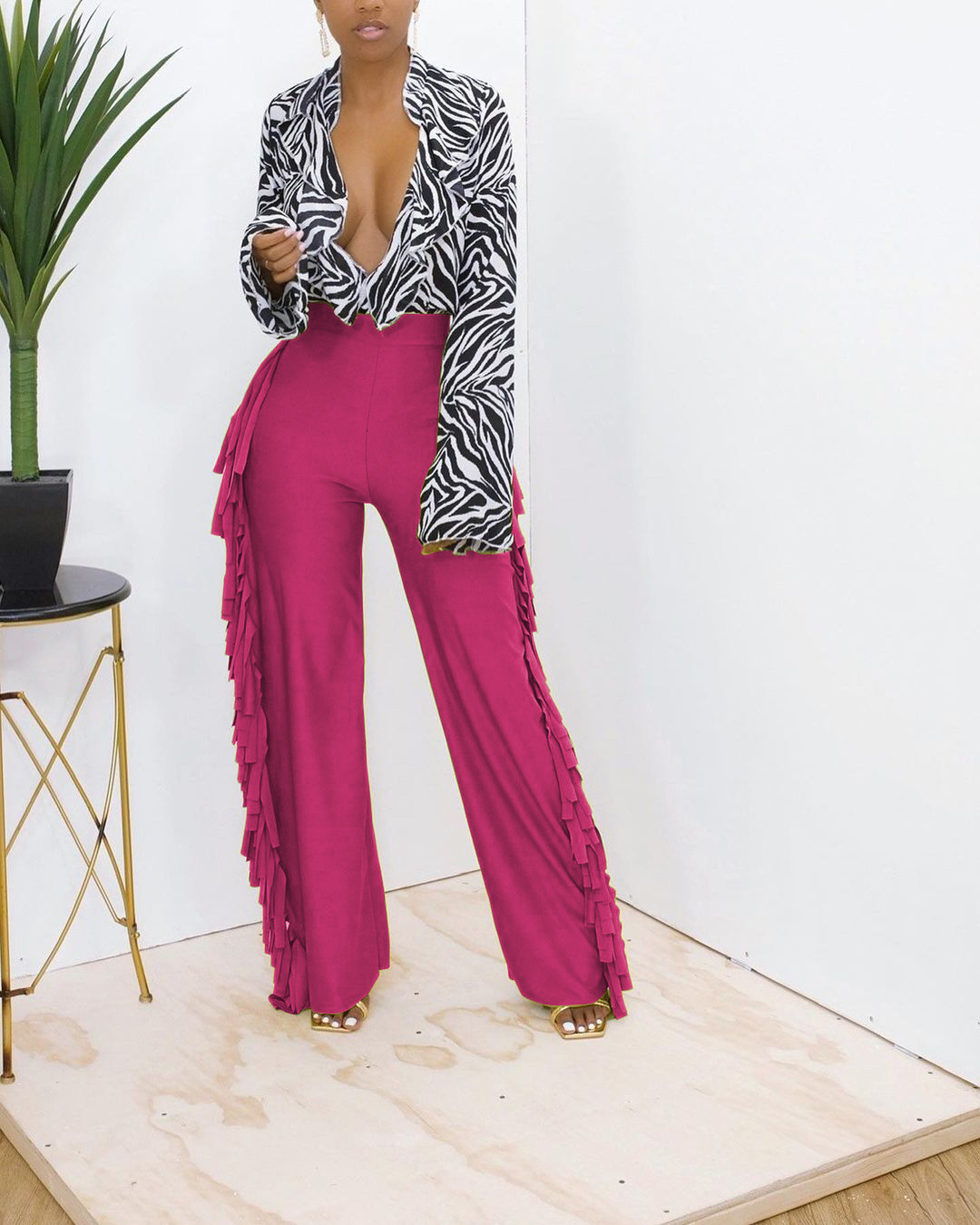 Women Brushed Cute Straight Wide-Leg Pants with Tassel on Both Sides