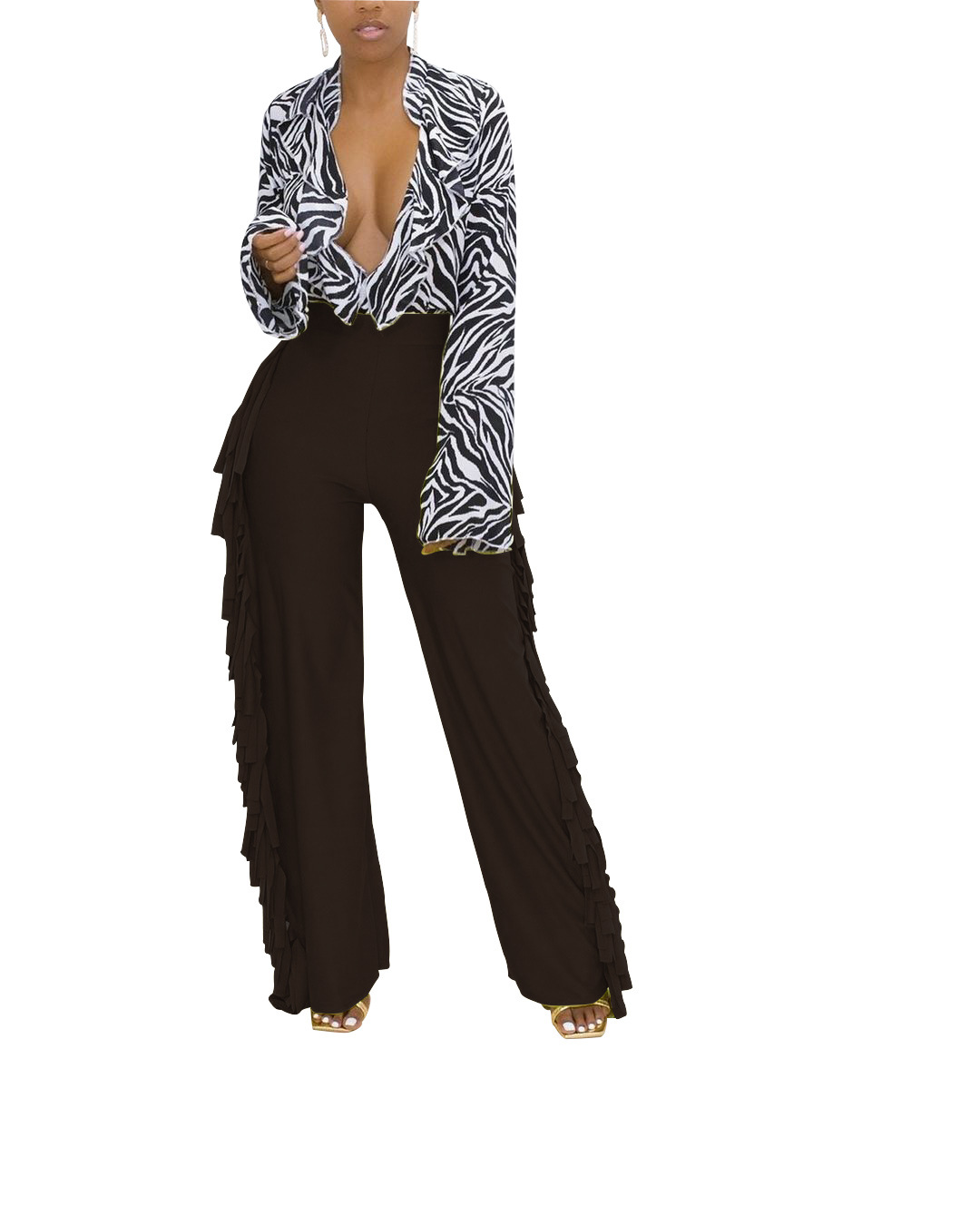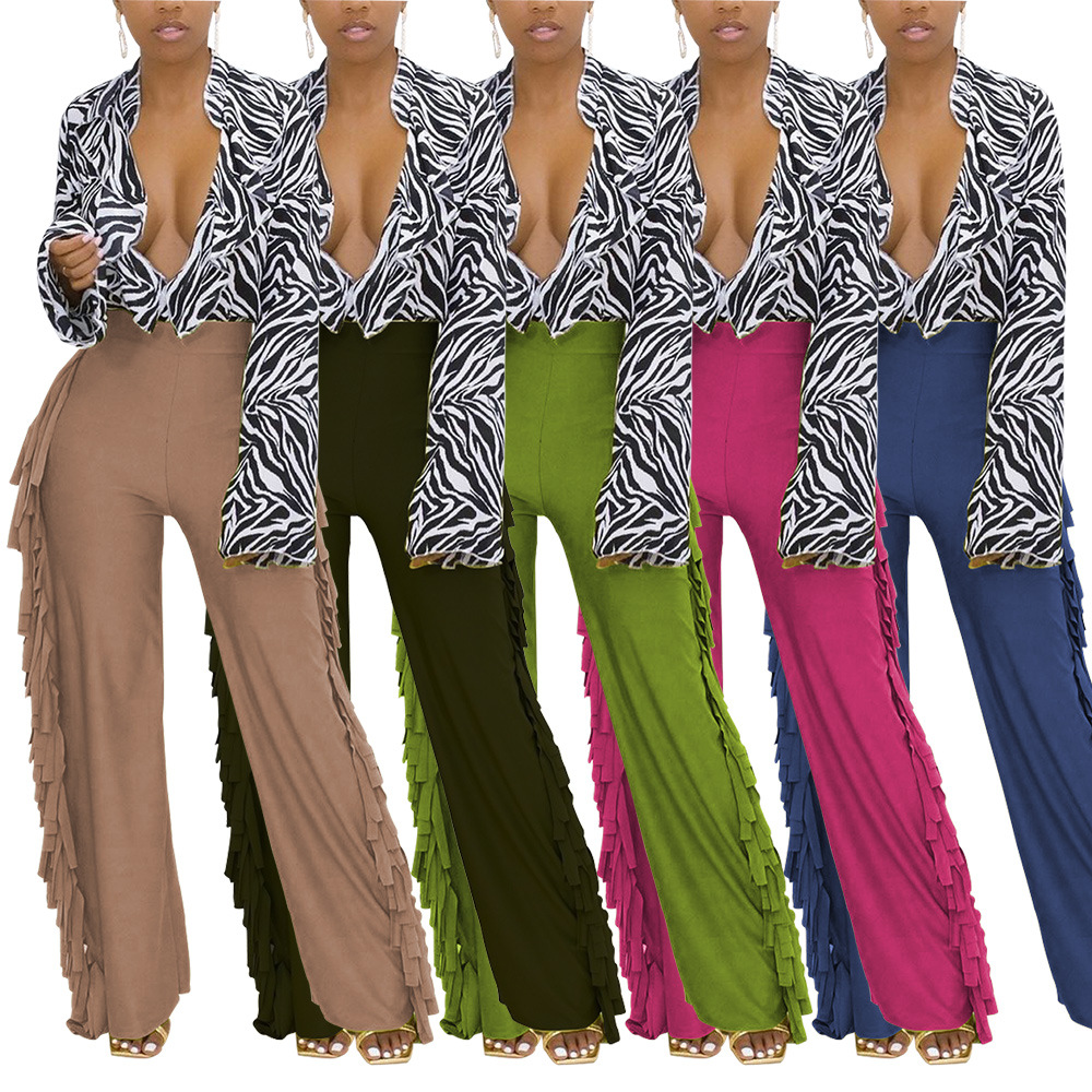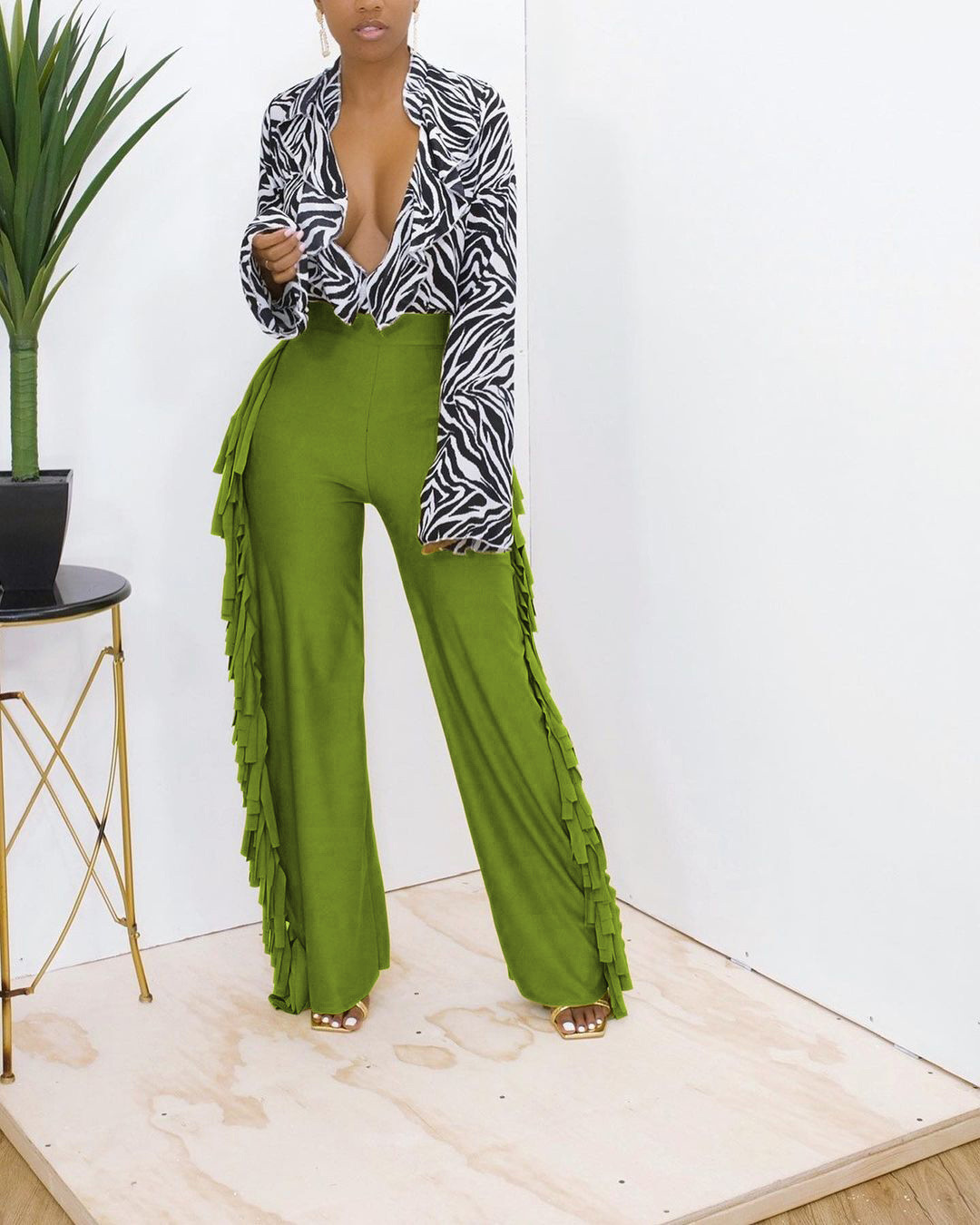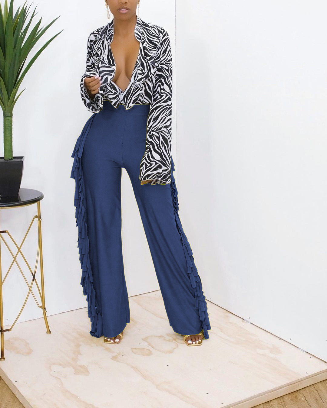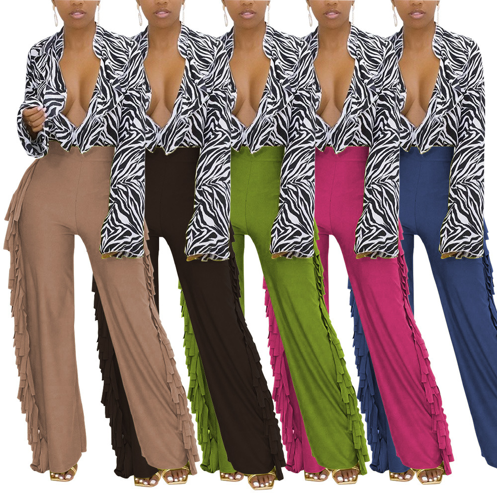 Women Brushed Cute Straight Wide-Leg Pants with Tassel on Both Sides