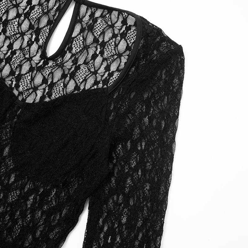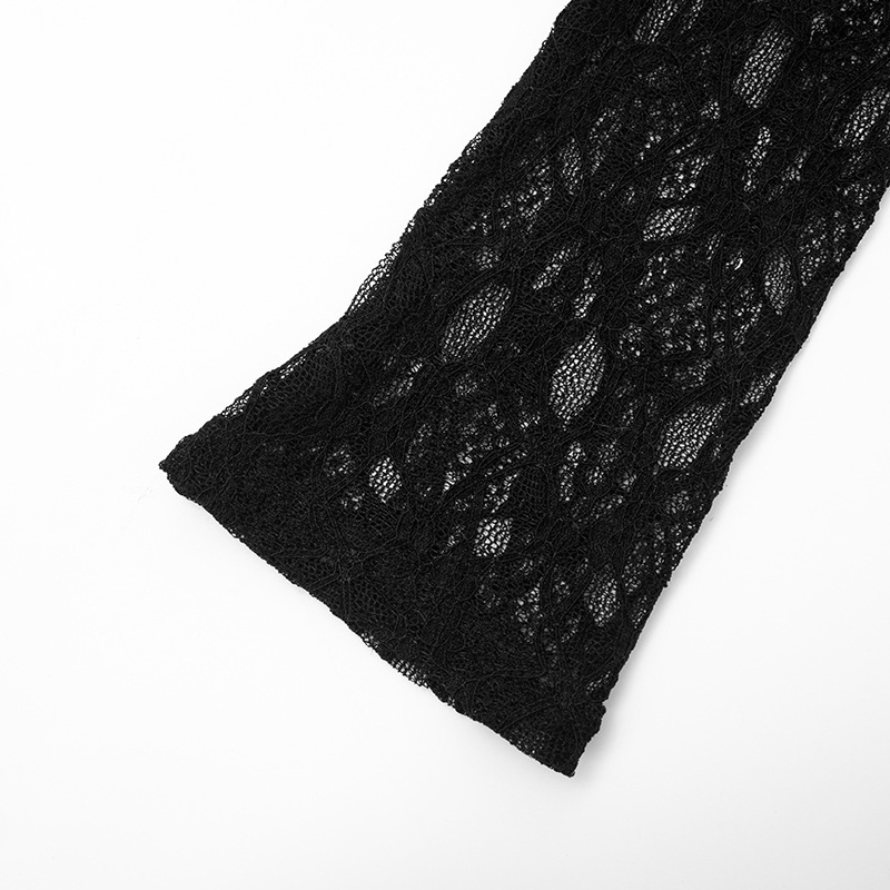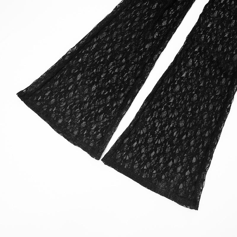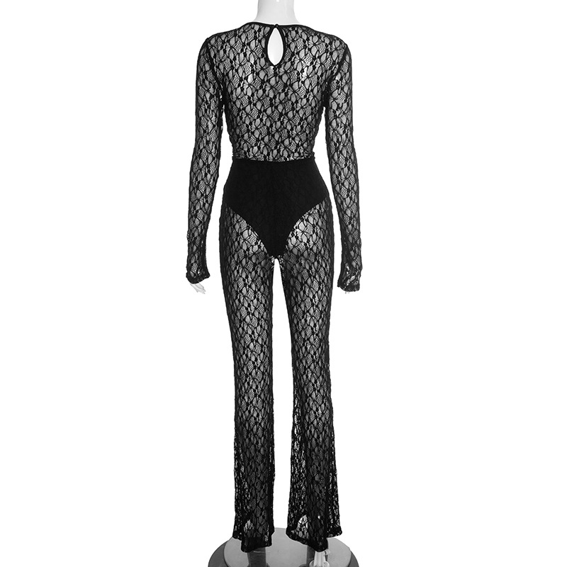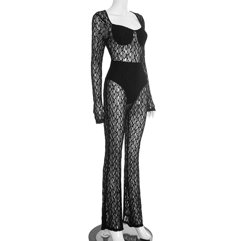 Women Clothing Autumn Arrival Solid Color Sexy Mesh Lace See through Horn Long Conjoined Trousers