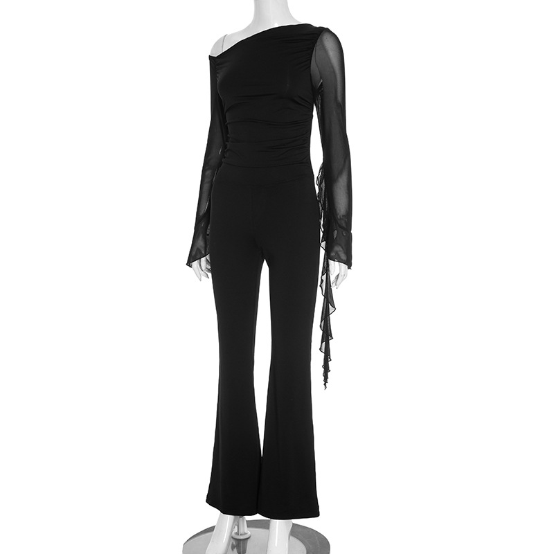 Women Clothing Autumn Arrival Solid Color Slim Fit Backless Strap Streamer Long Sleeve Long Conjoined Trousers