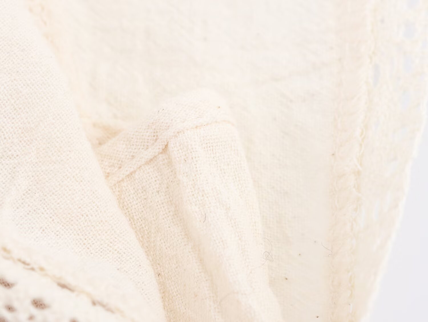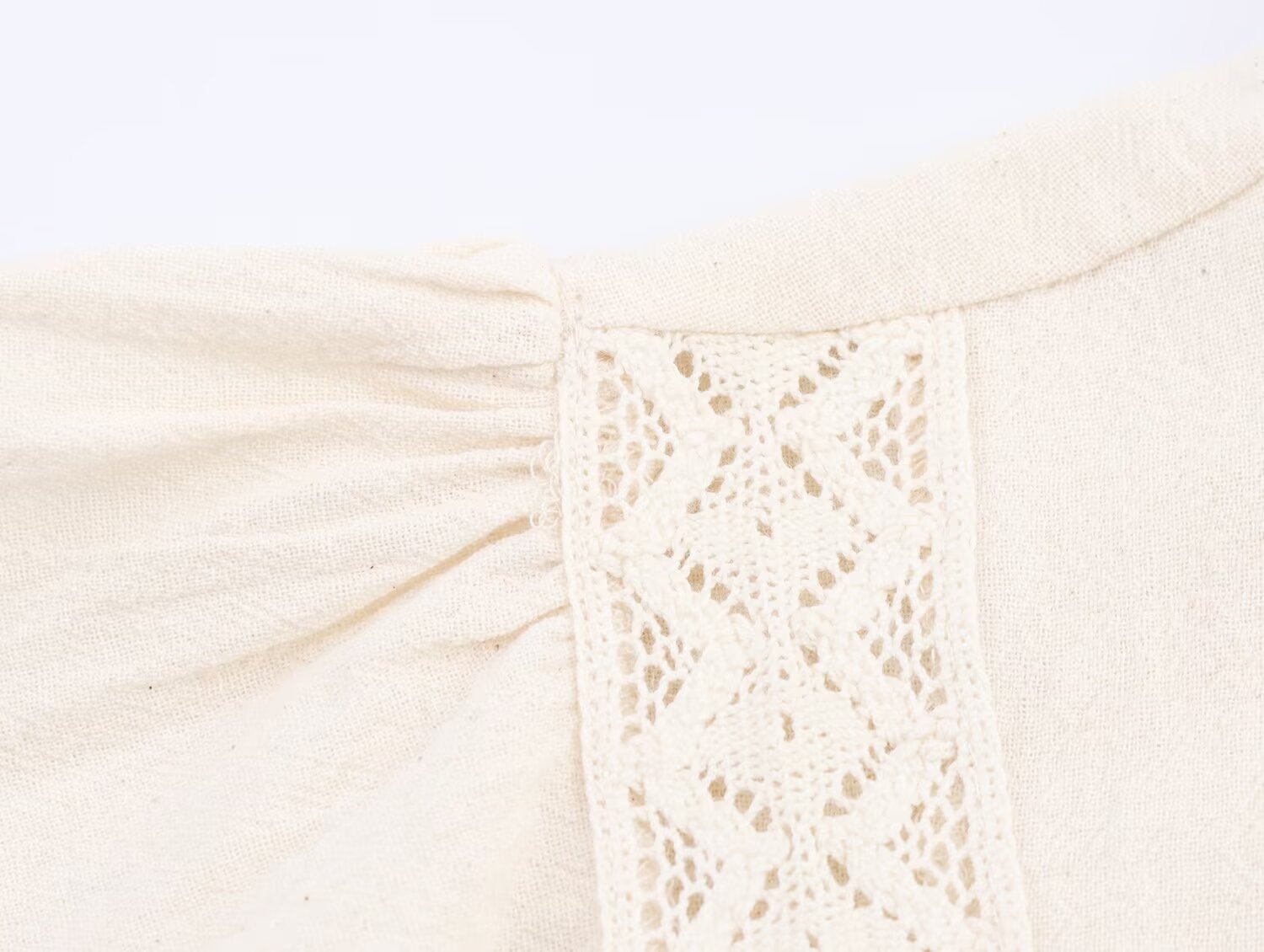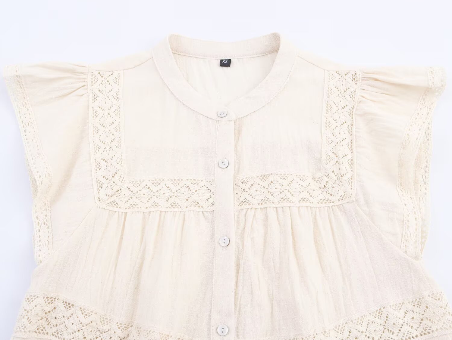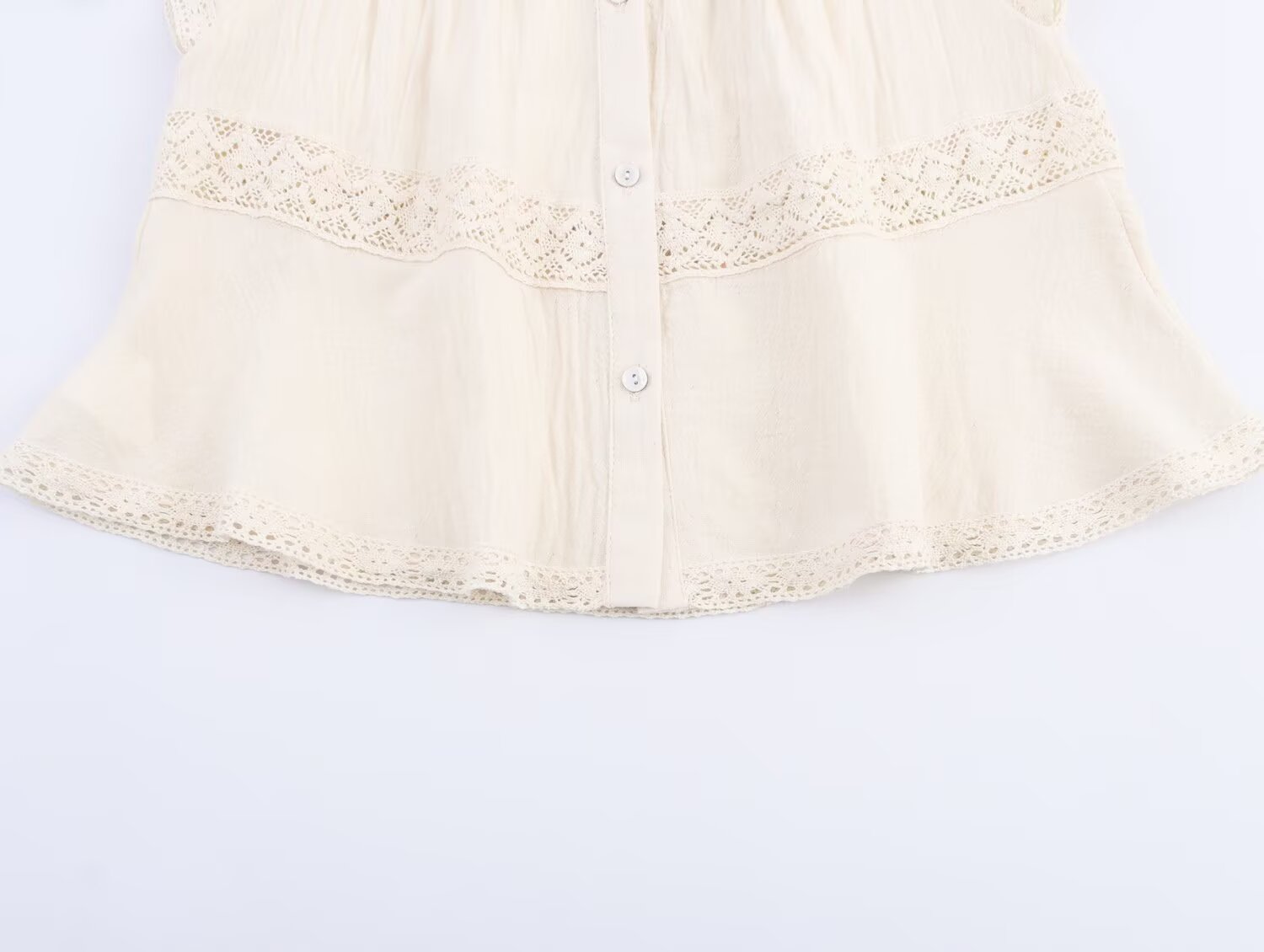 Women Clothing Autumn Holiday Gentle Straight Lace Crocheted round Neck Top