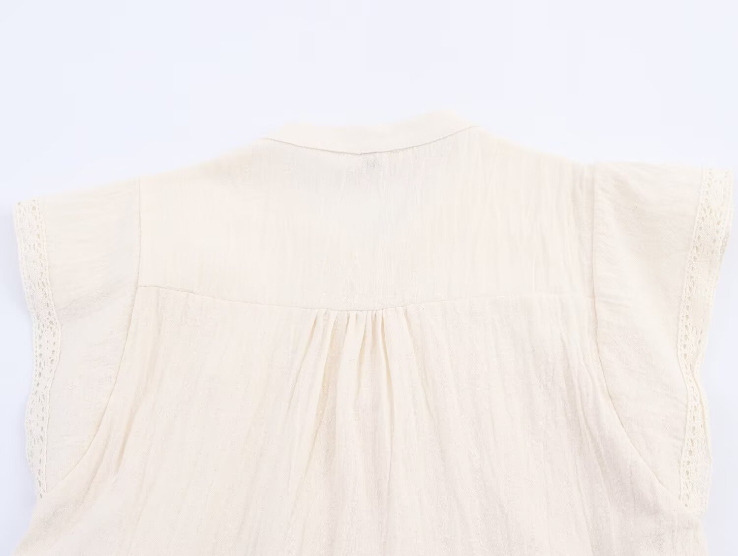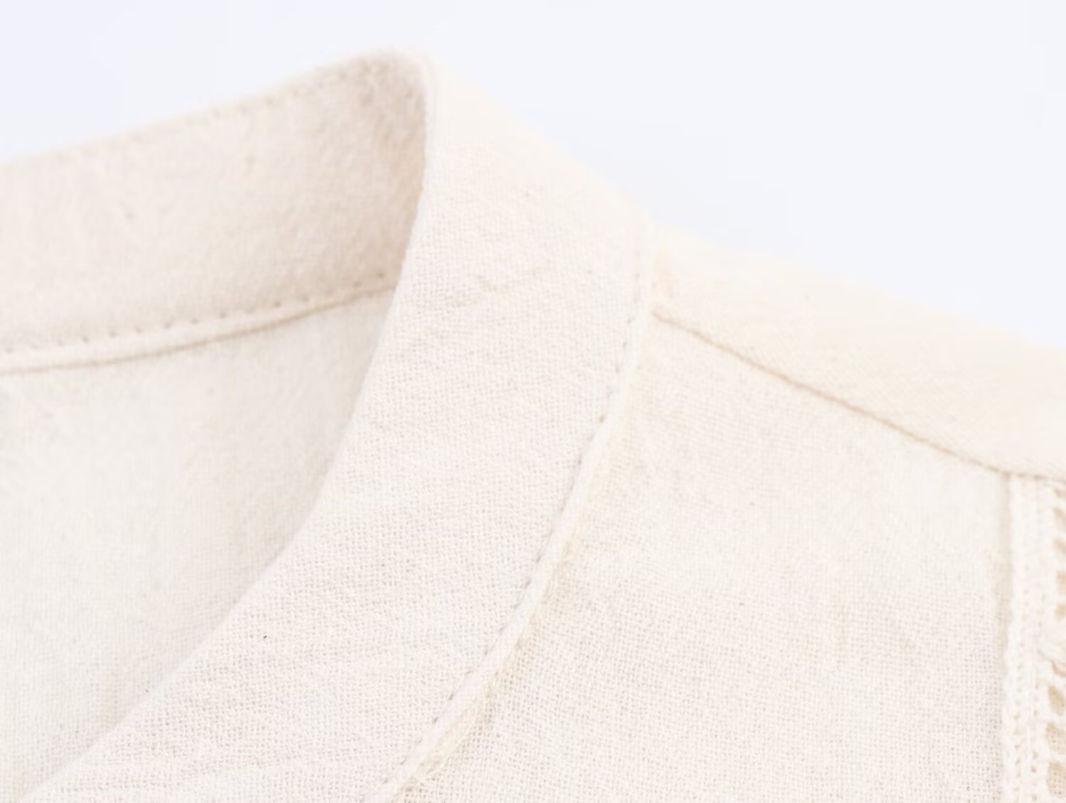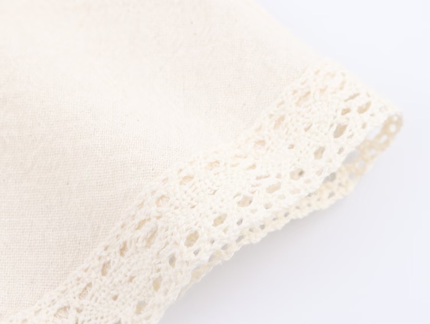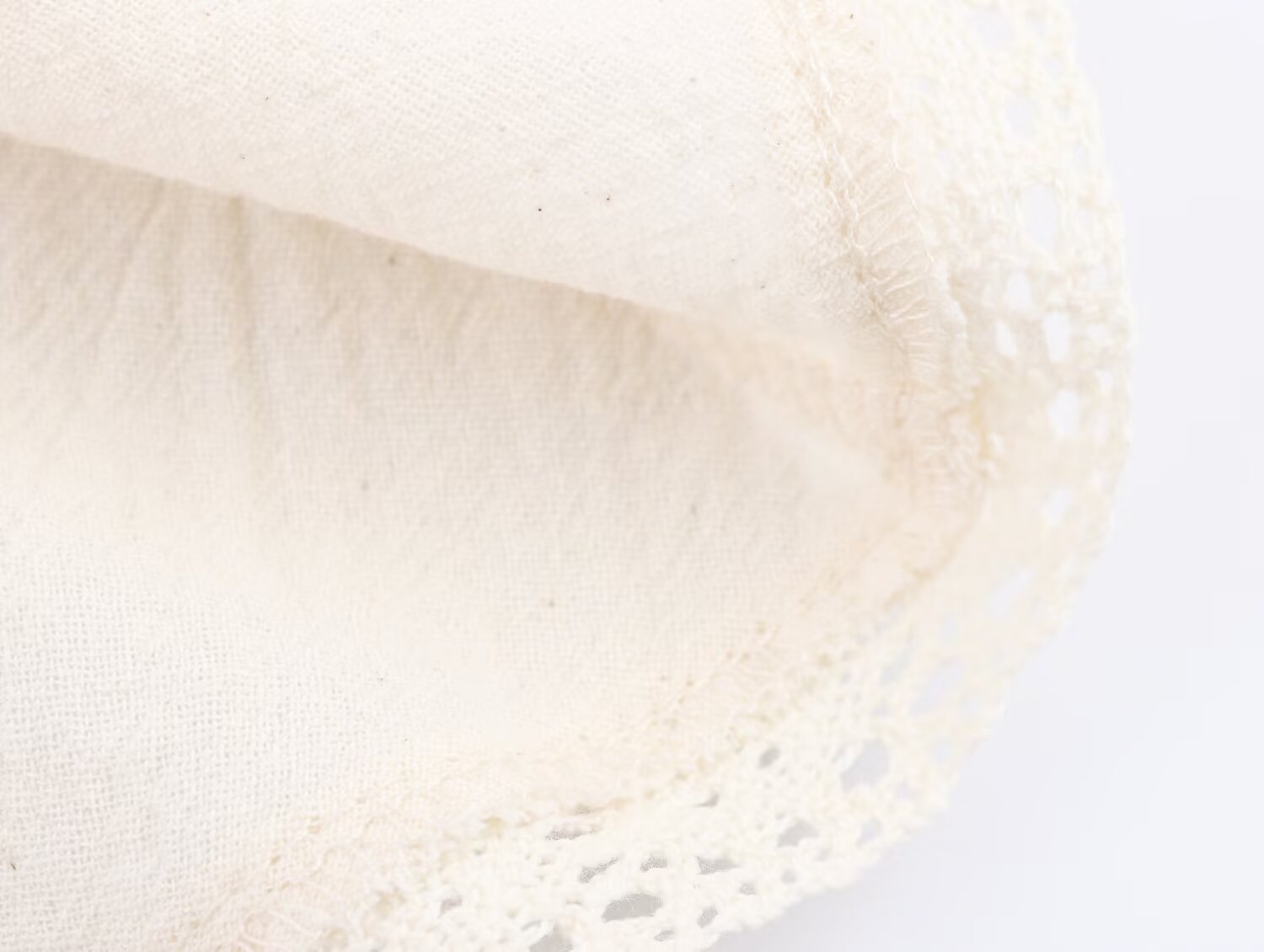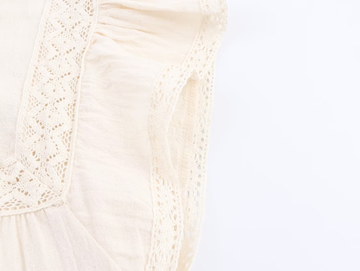 Women Clothing Autumn Holiday Gentle Straight Lace Crocheted round Neck Top