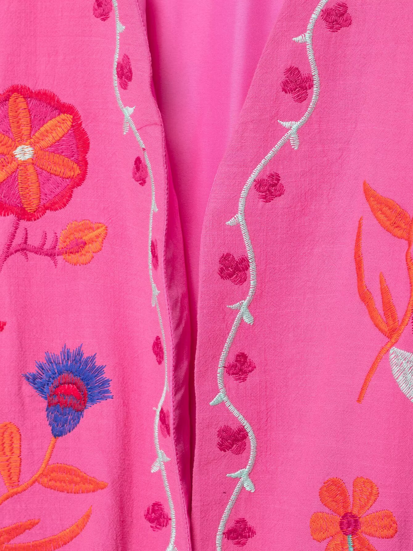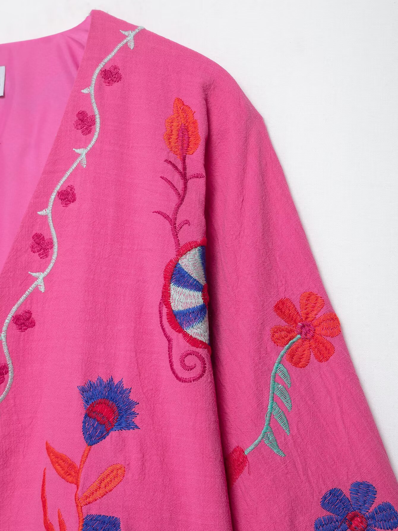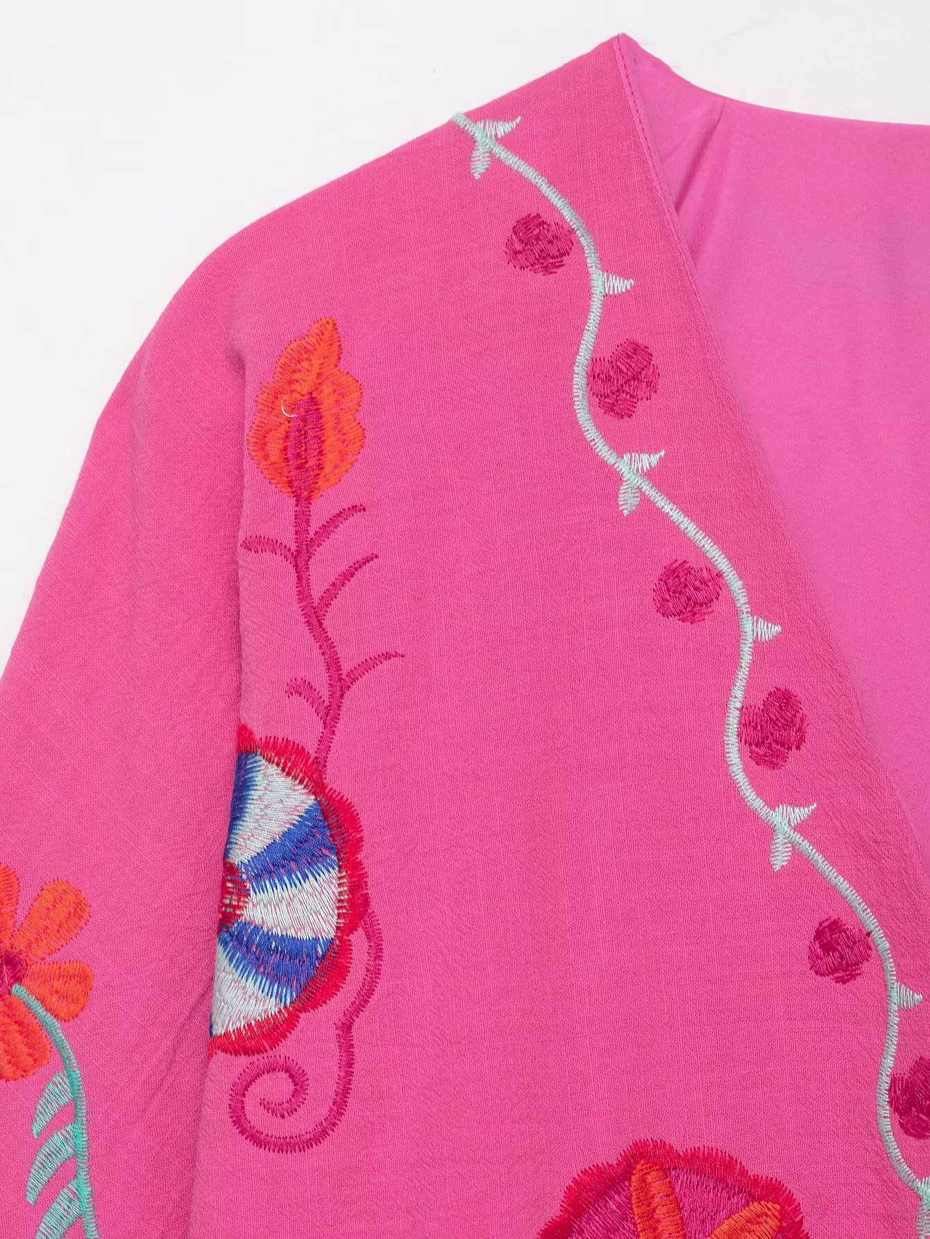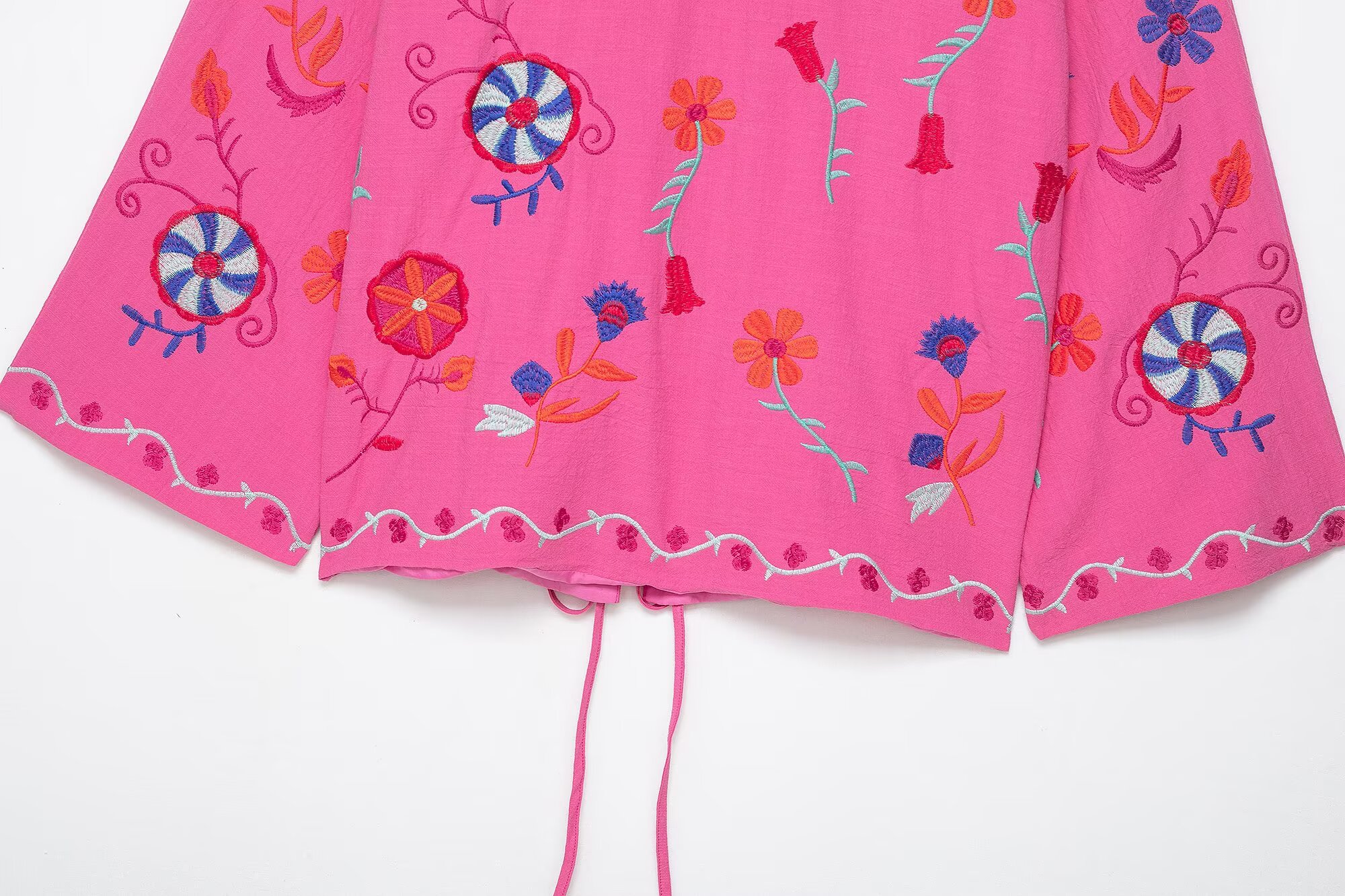 Women Clothing Autumn Loose Embroidered Cardigan Tie Front Top