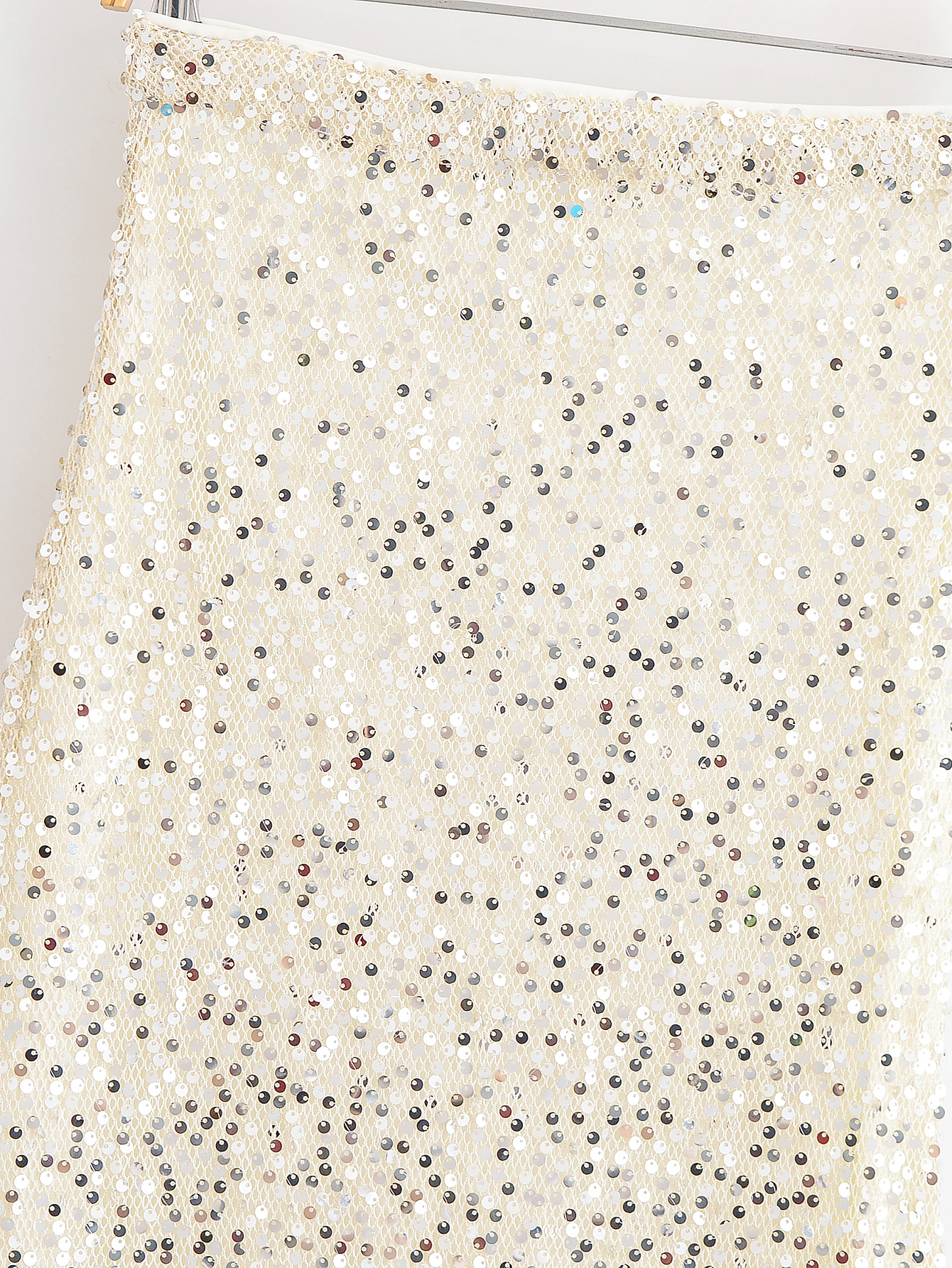 Women Clothing Autumn Socialite Heavy Industry Beads Decoration Midi Skirt