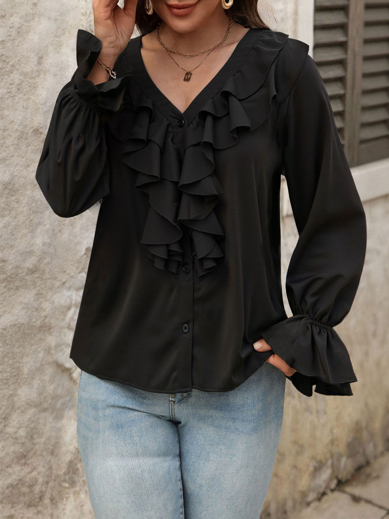 Women Clothing Autumn V neck Ruffled Elegant Shirt for Women