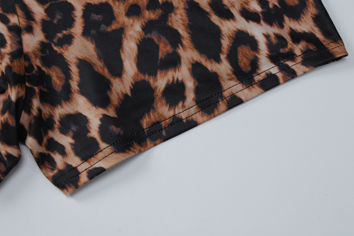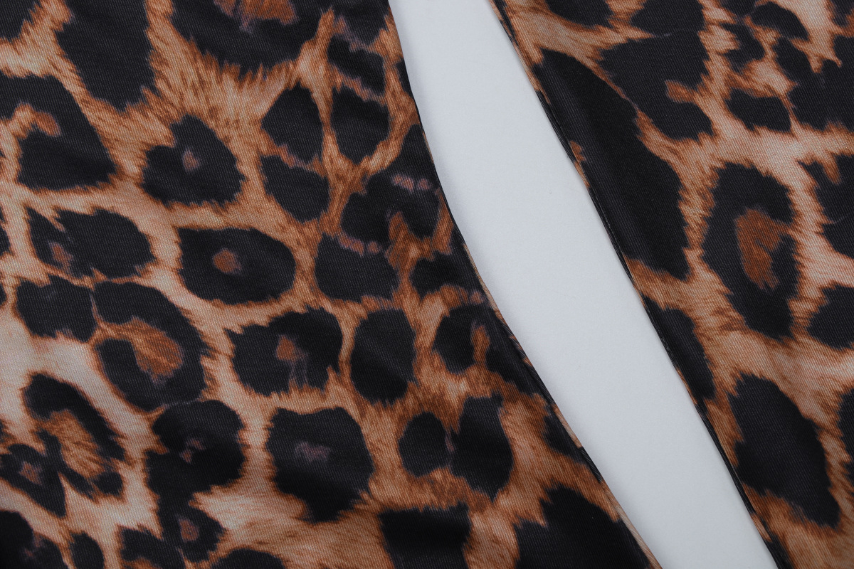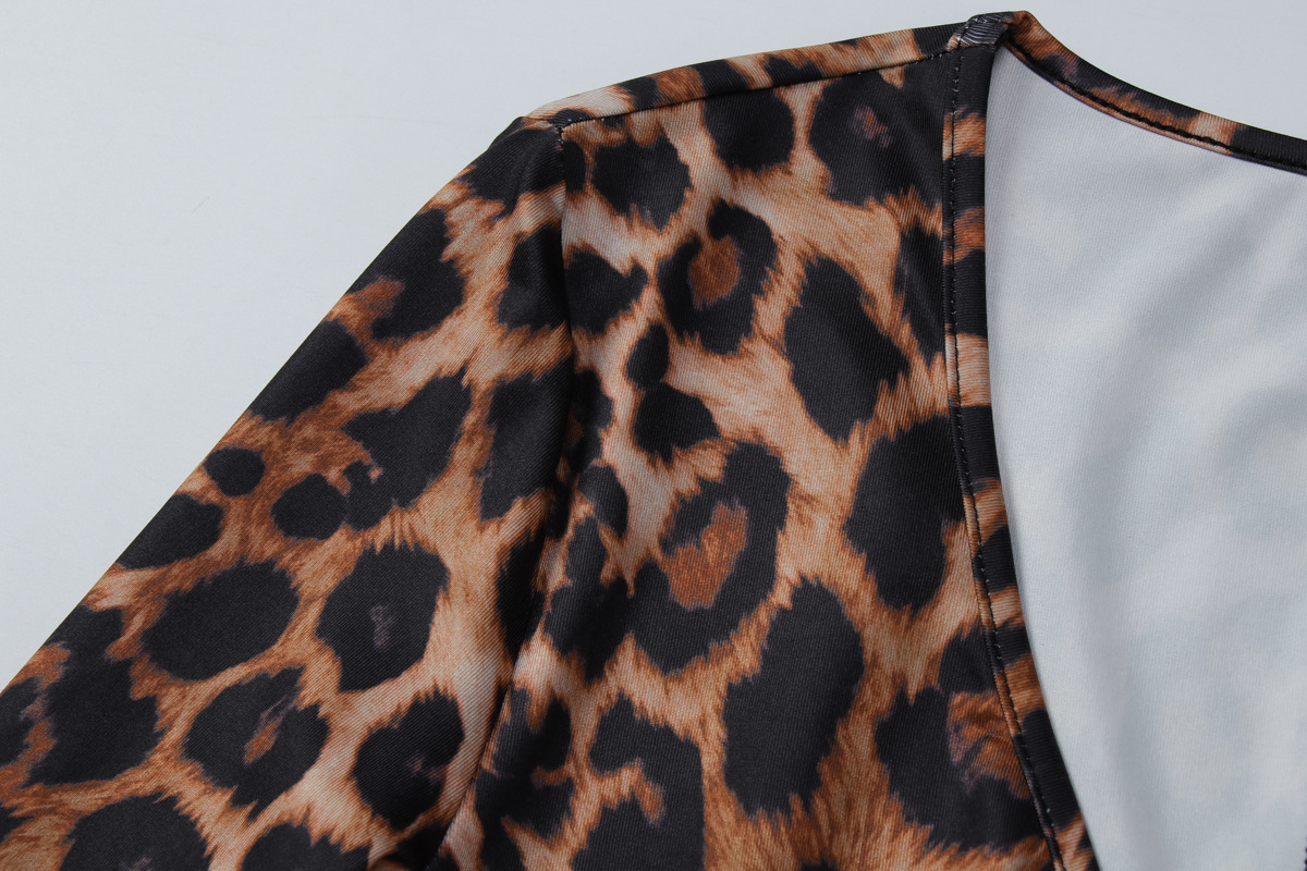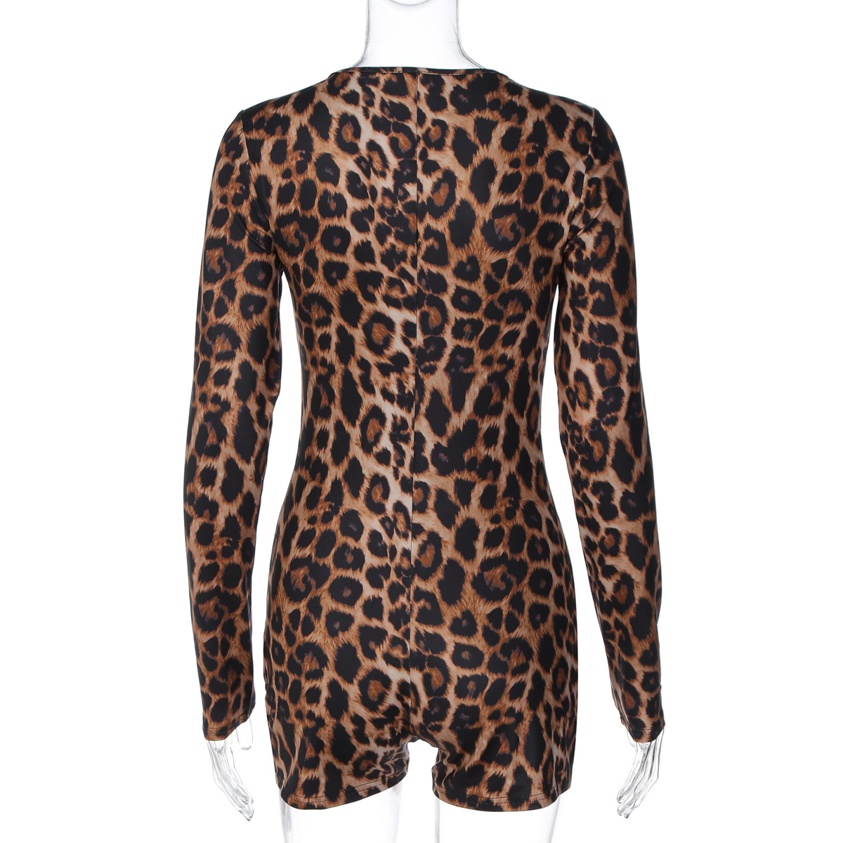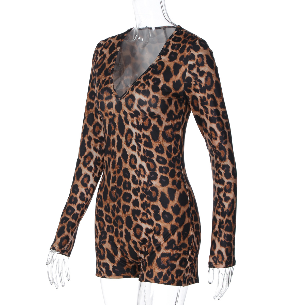 Women Clothing Autumn Winter Leopard Print V neck Long Sleeve Sexy Tight Jumpsuit Women