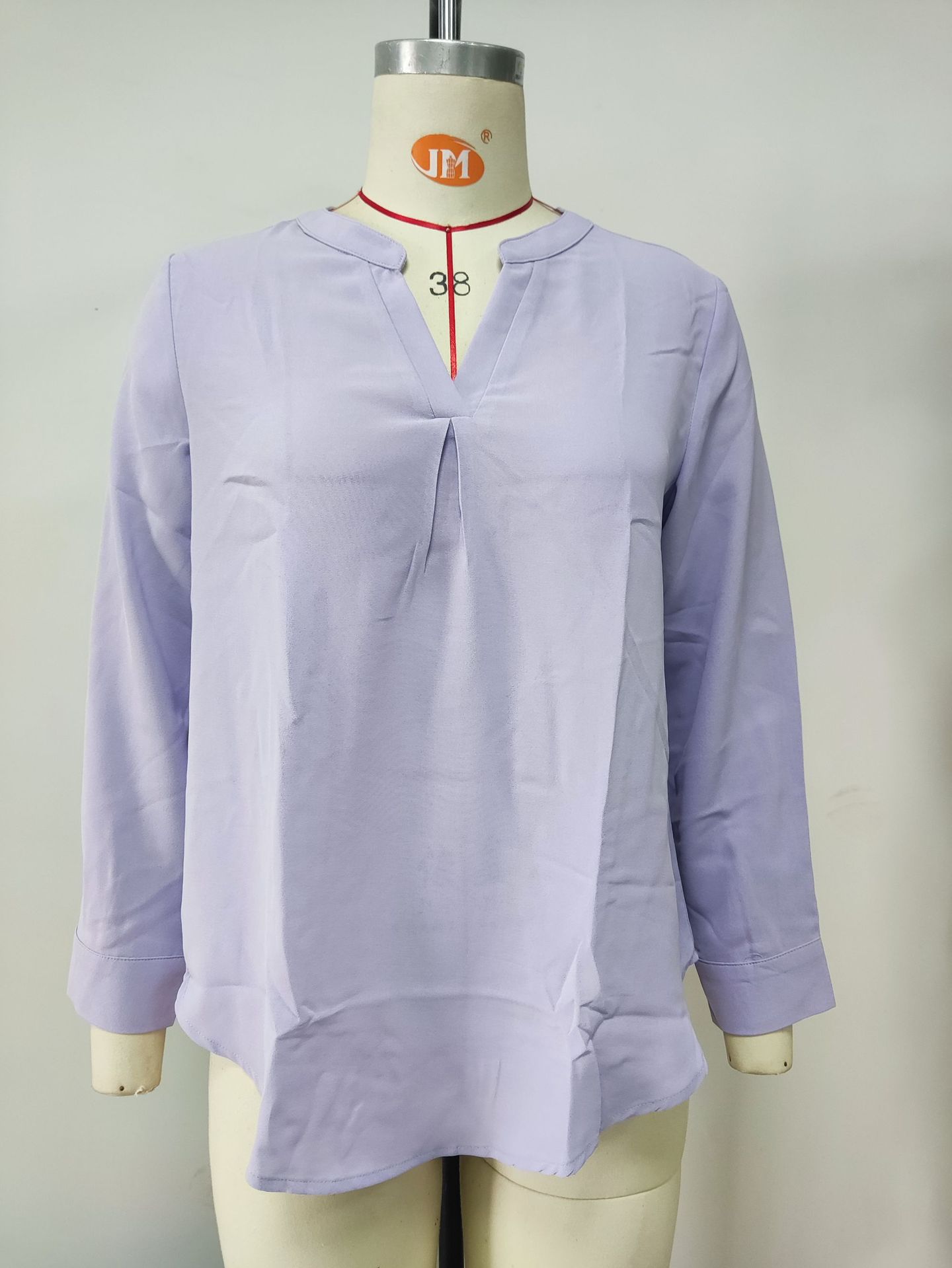 Women Clothing Autumn Winter Solid Color Chiffon Shirt Loose V neck Pullover Long Sleeve Top Shirt