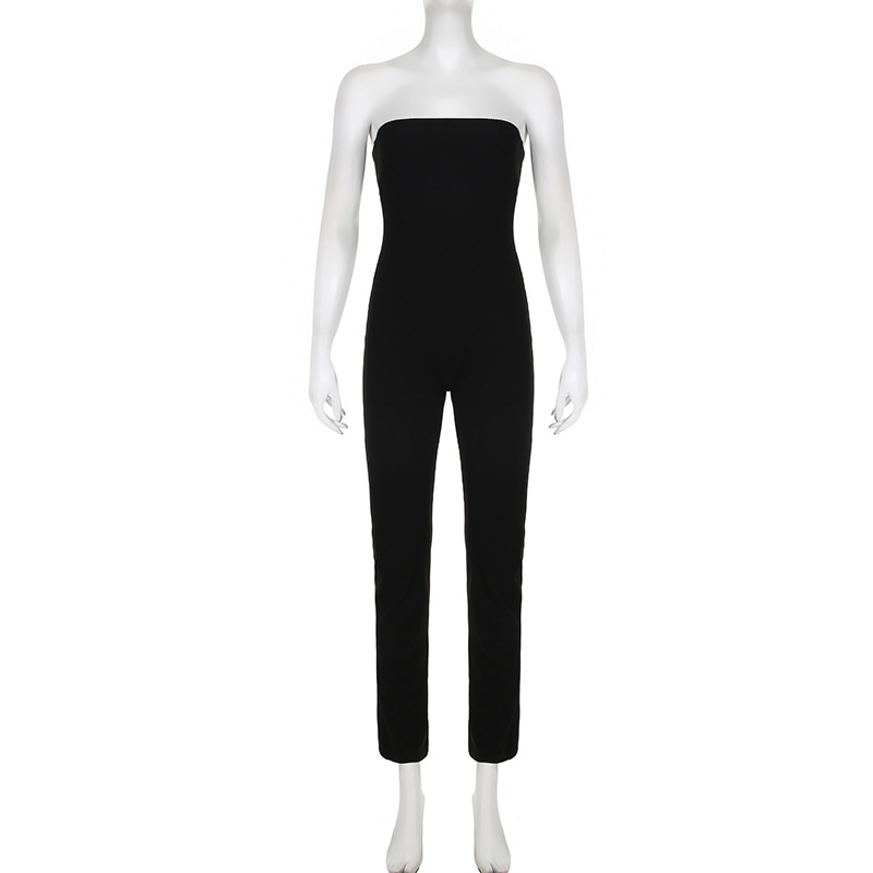 Women Clothing Basic Solid Color Slim Fit Tube Top off Neck Waist Tight Sports Casual Yoga One Piece Trousers