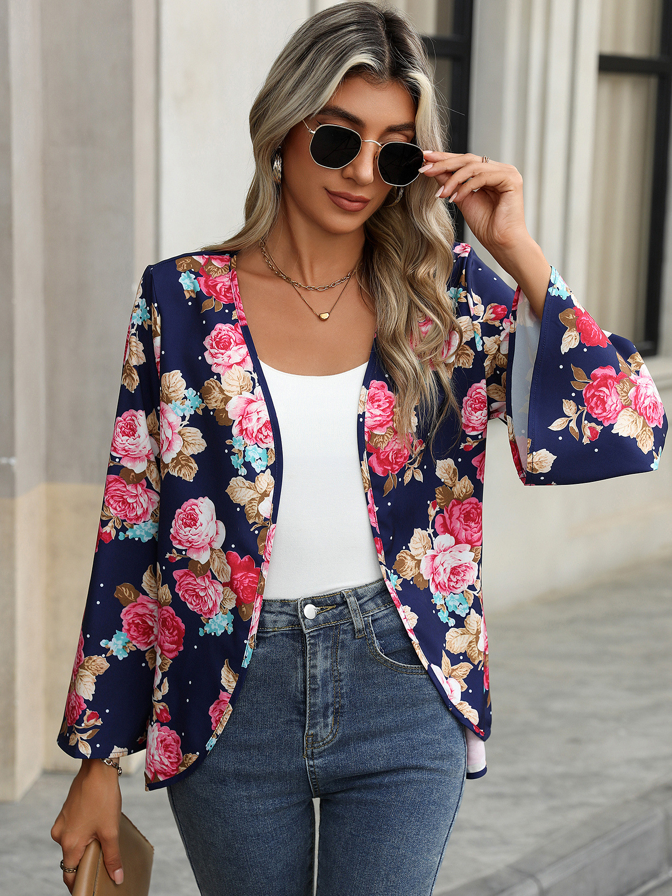 Women Clothing Best Seller Spring Autumn V neck Floral Print Bell Sleeve Women Shirt
