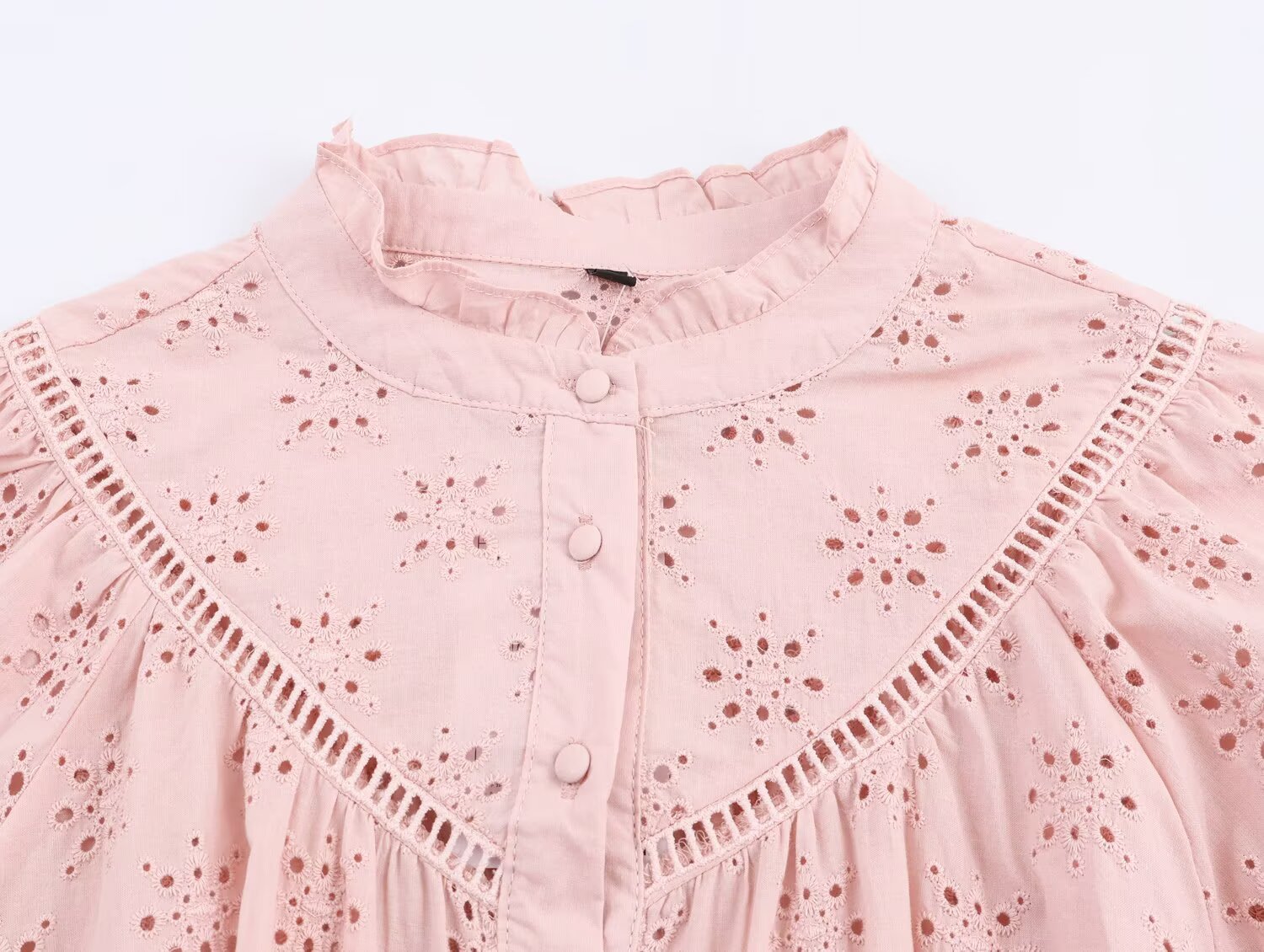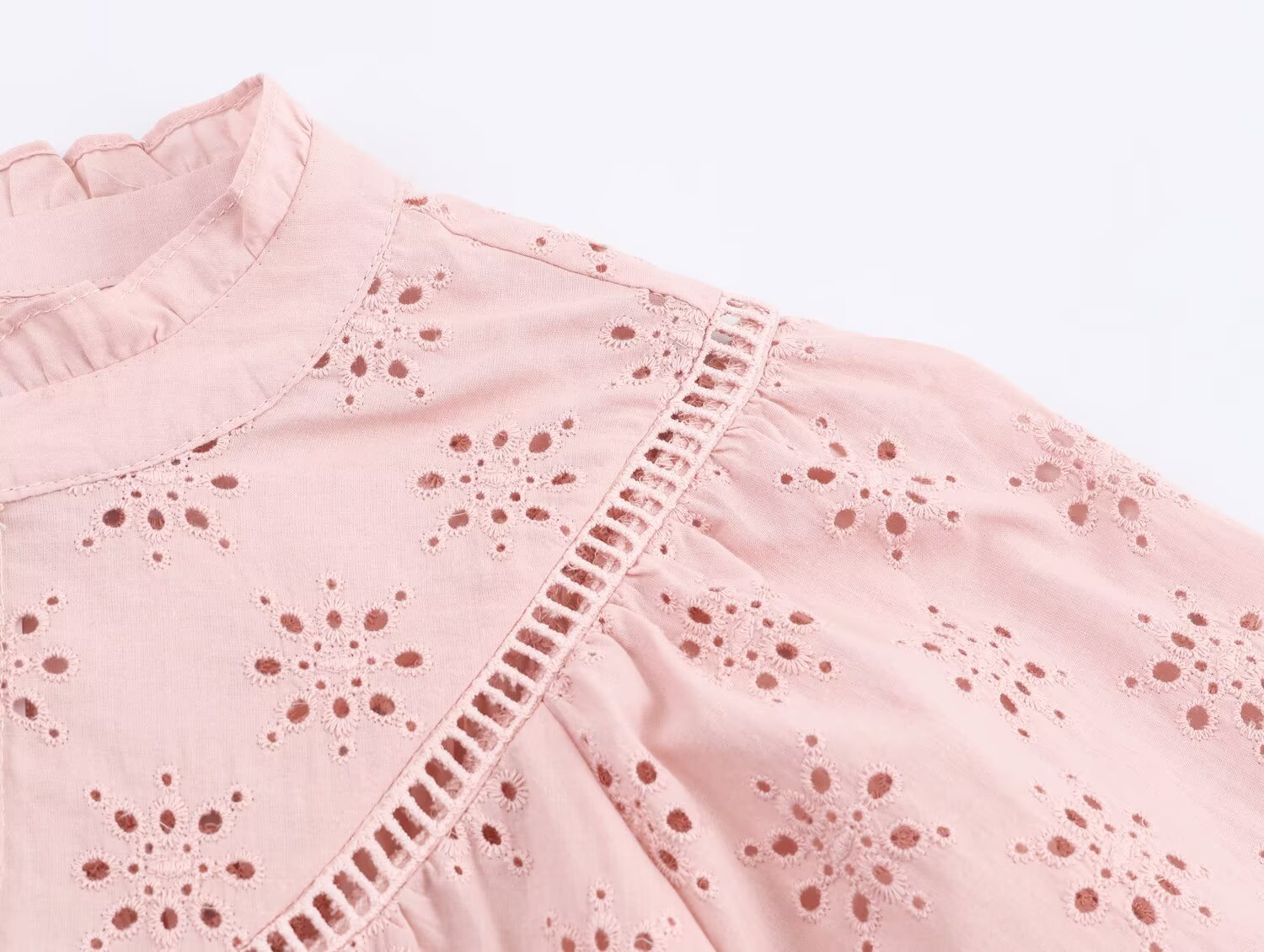 Women Clothing Casual Hollow Out Cutout Embroidered Shirt