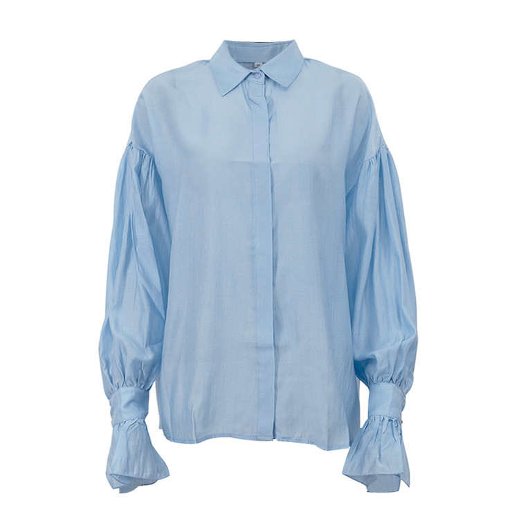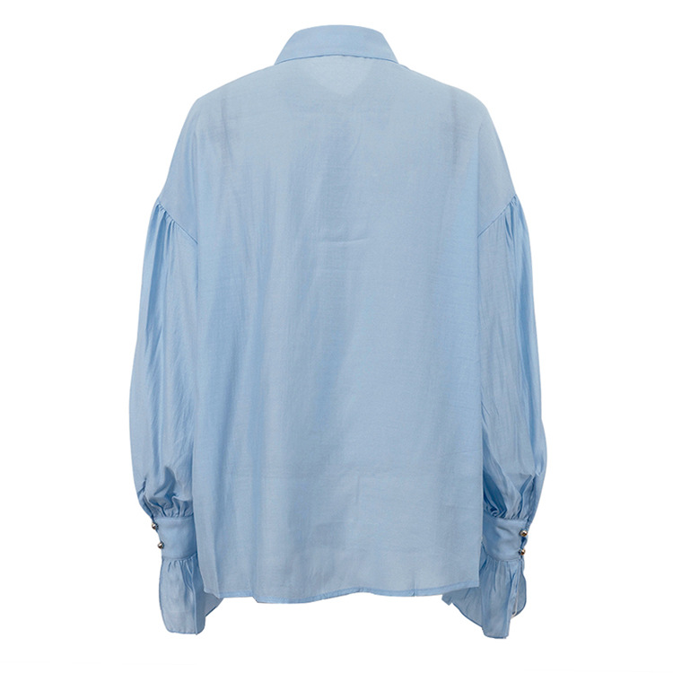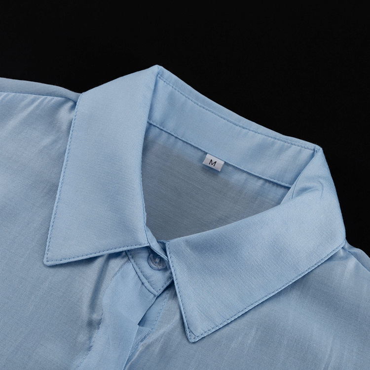 Women Clothing Casual Long Sleeve Shirt Women Solid Color High Sense Cardigan Top Office All Matching Shirt