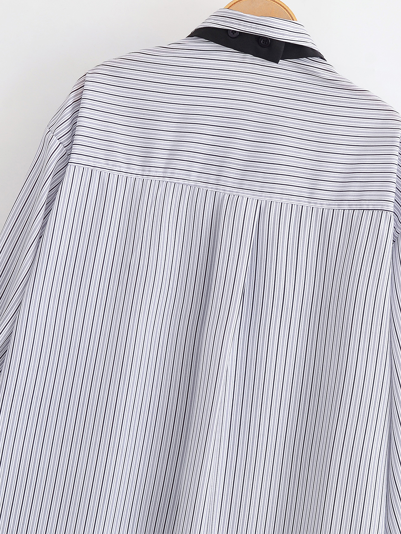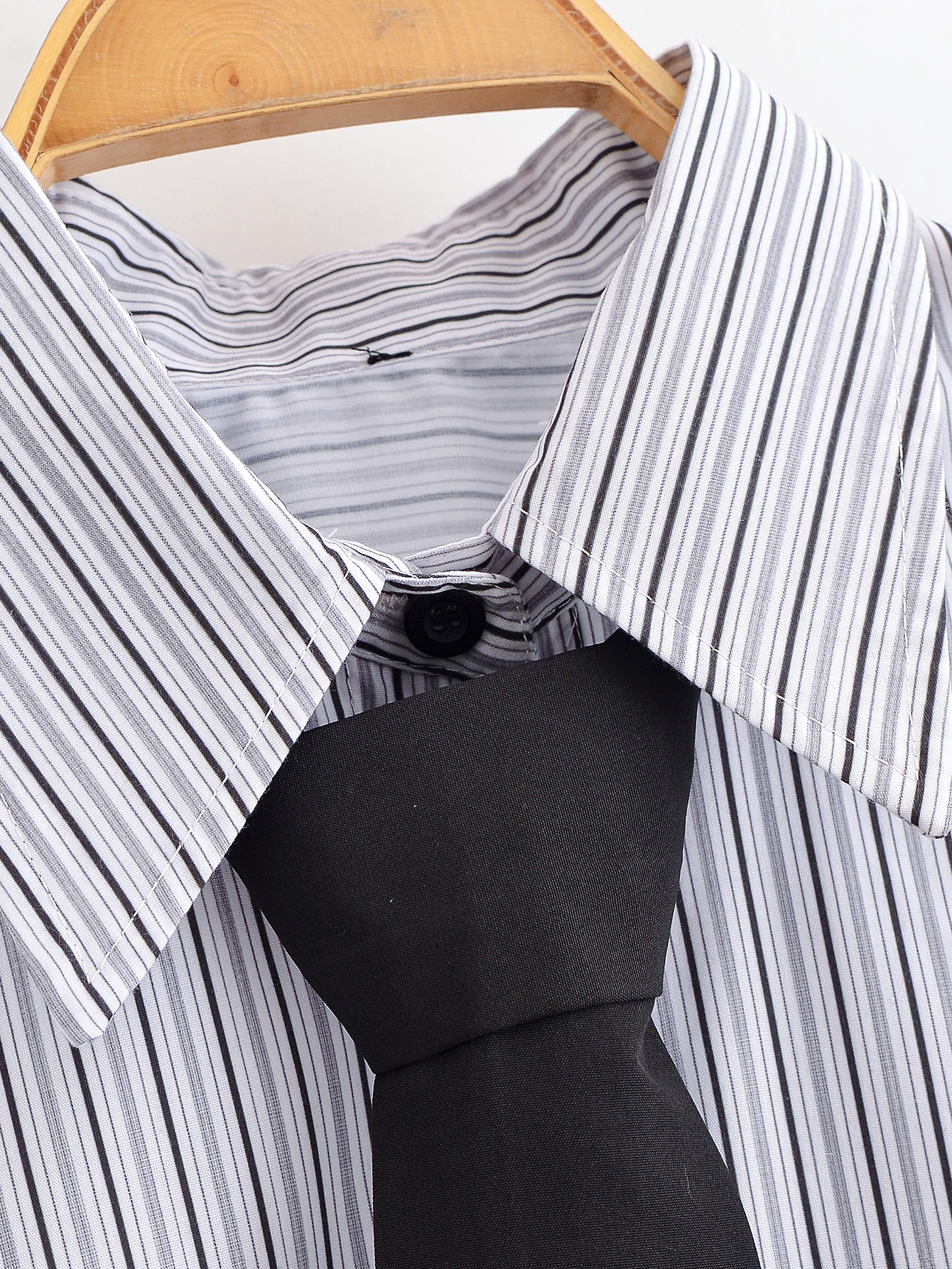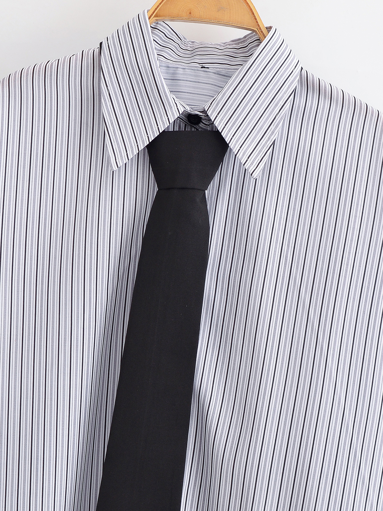 Women Clothing Casual Tie Decorated Poplin Shirt