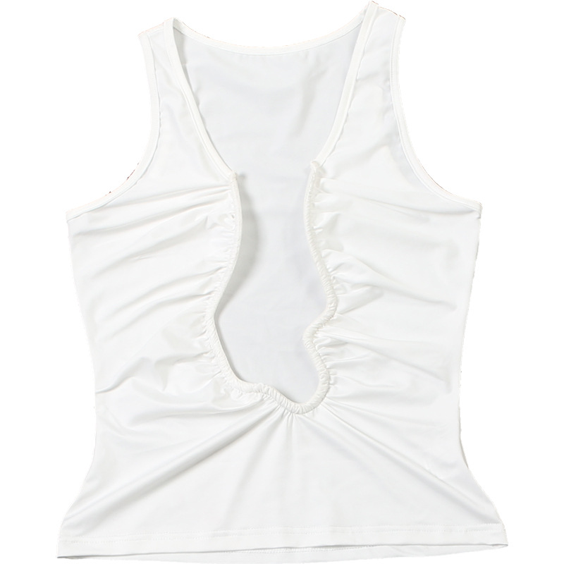 Women Clothing Fall Sexy Solid Color Slim Slimming Pleated Hollow Out Cutout Vest for Women