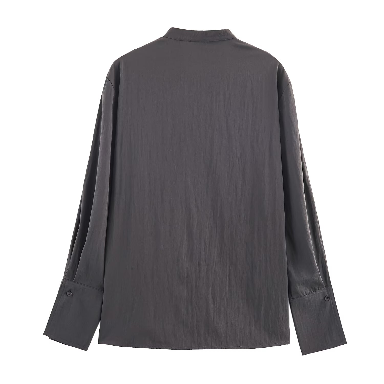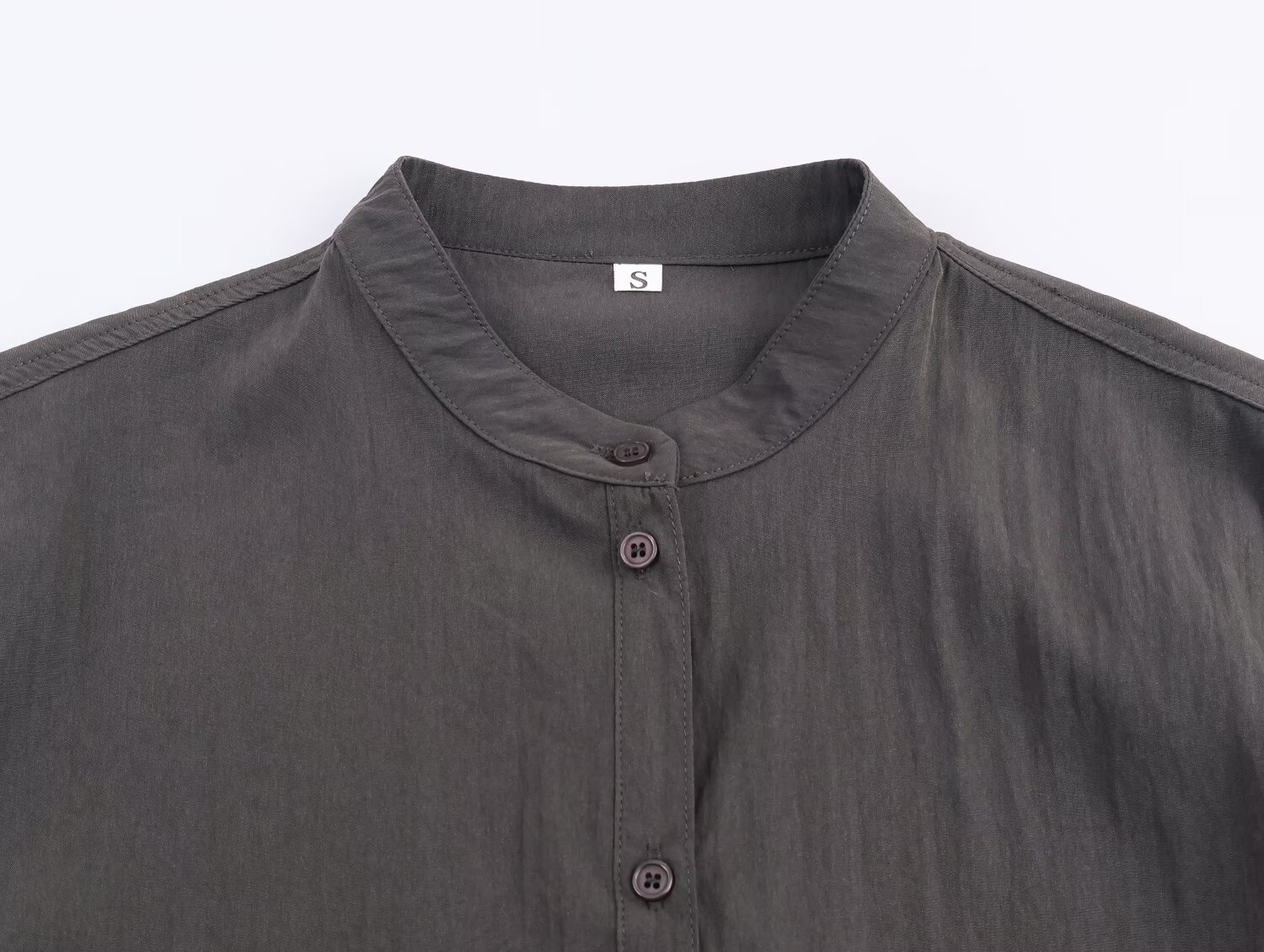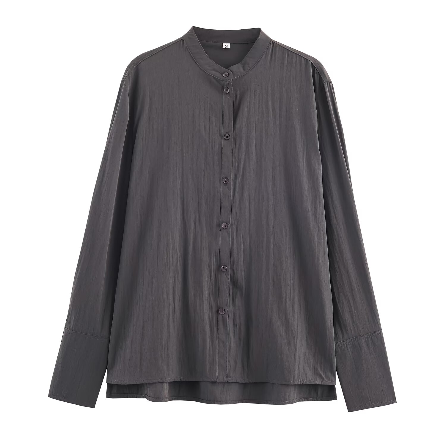 Women Clothing Loose Casual Long Sleeves Stand Collar Shirt