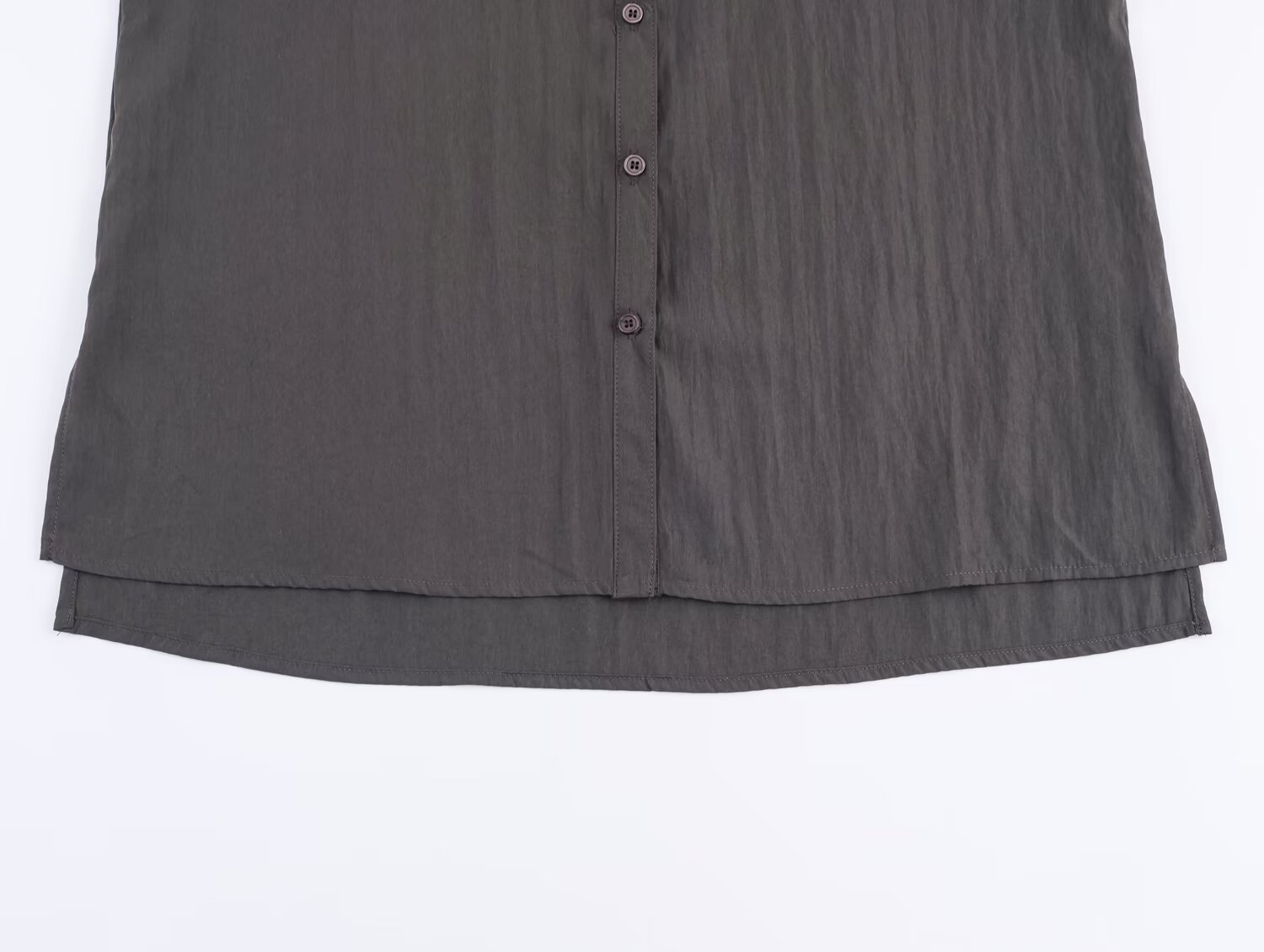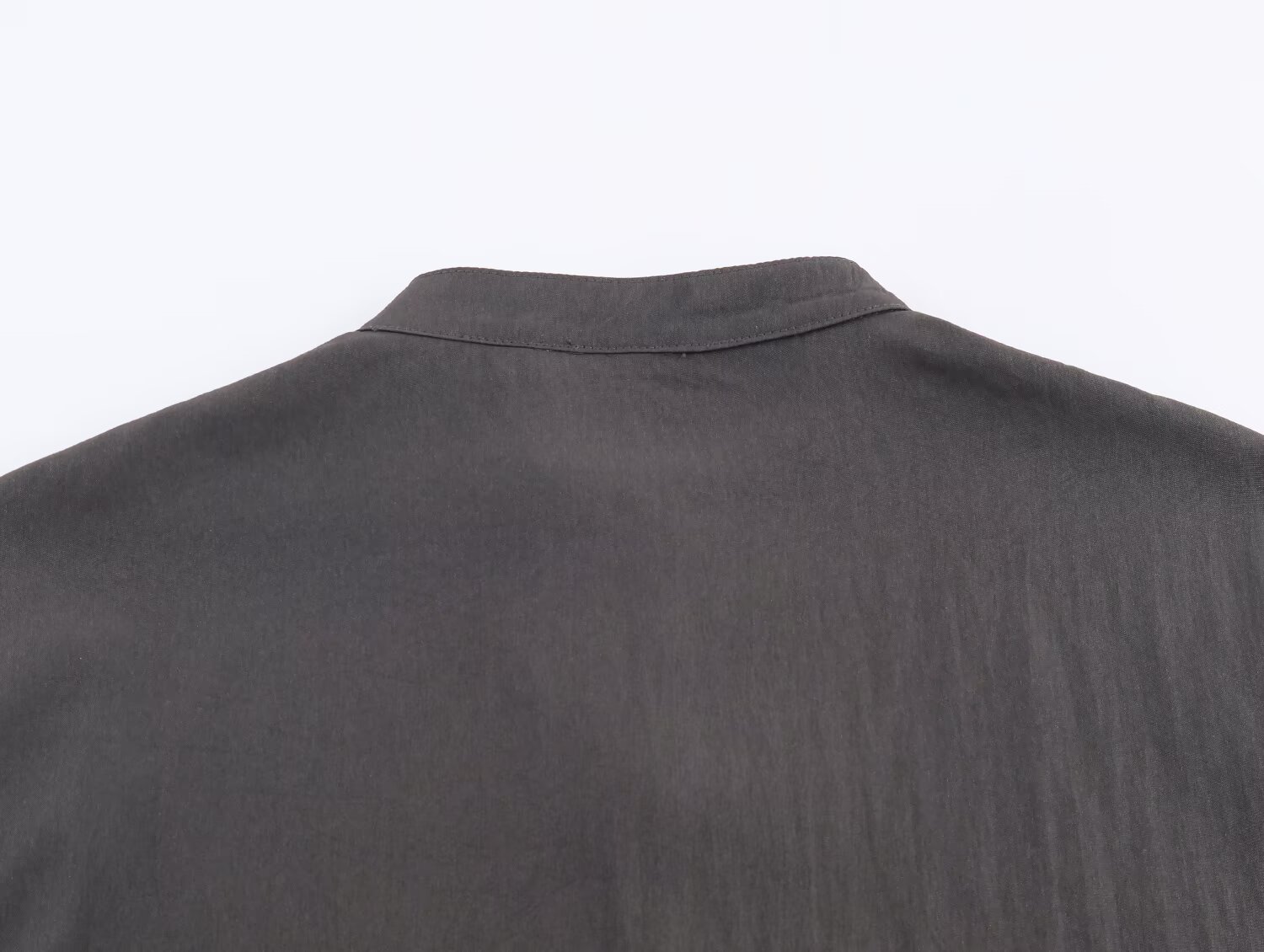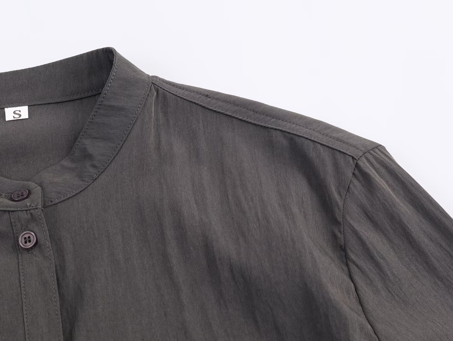 Women Clothing Loose Casual Long Sleeves Stand Collar Shirt