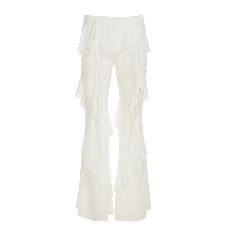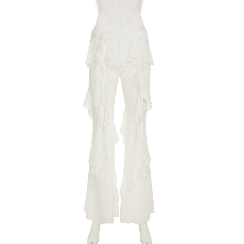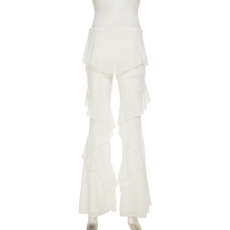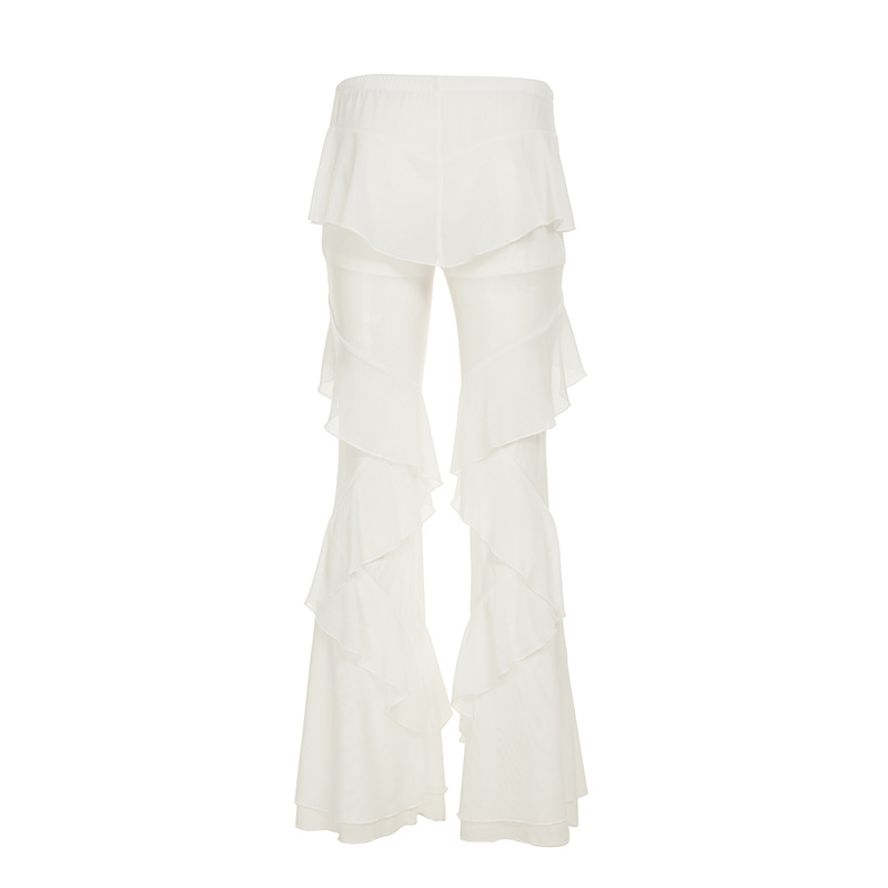 Women Clothing Ruffled Stitching Layered Mesh Trousers Sexy Cake Skinny Culottes