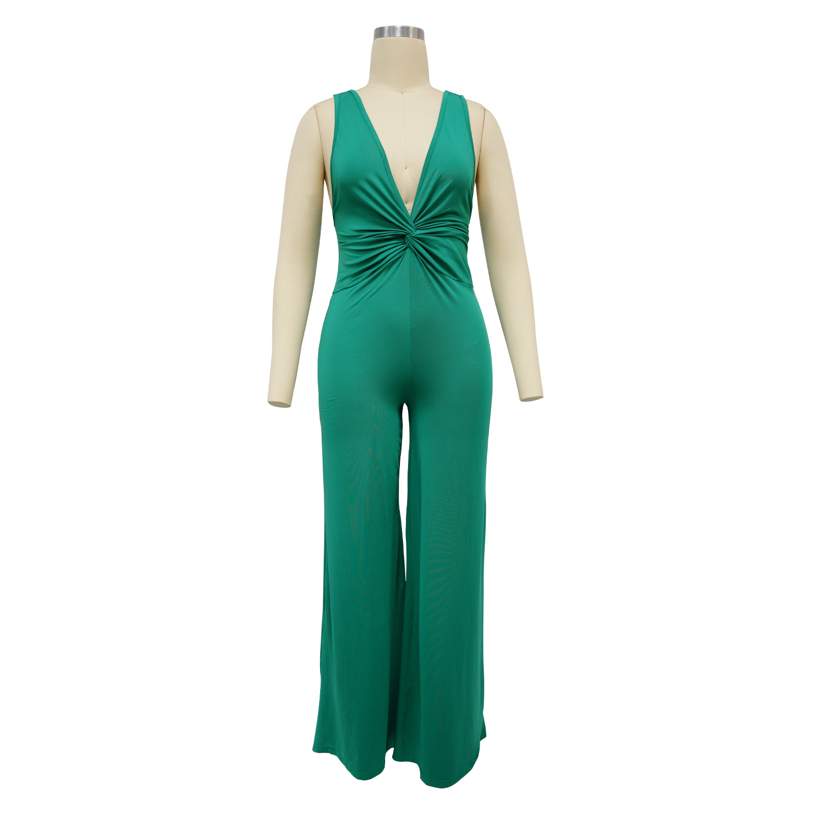 Women Clothing Sexy Deep V Plunge Neck Backless Sleeveless Jumpsuit