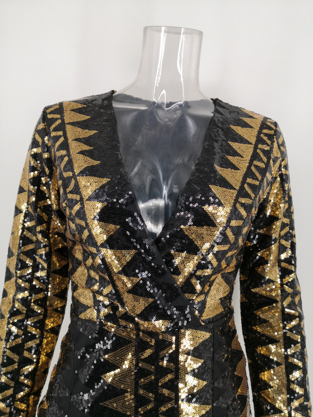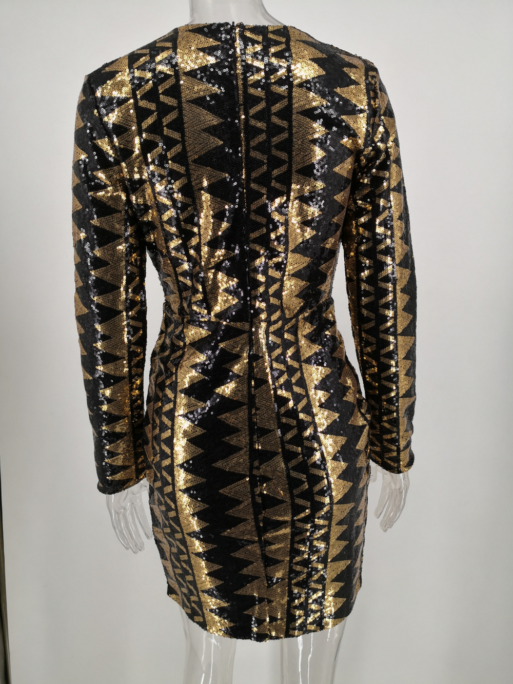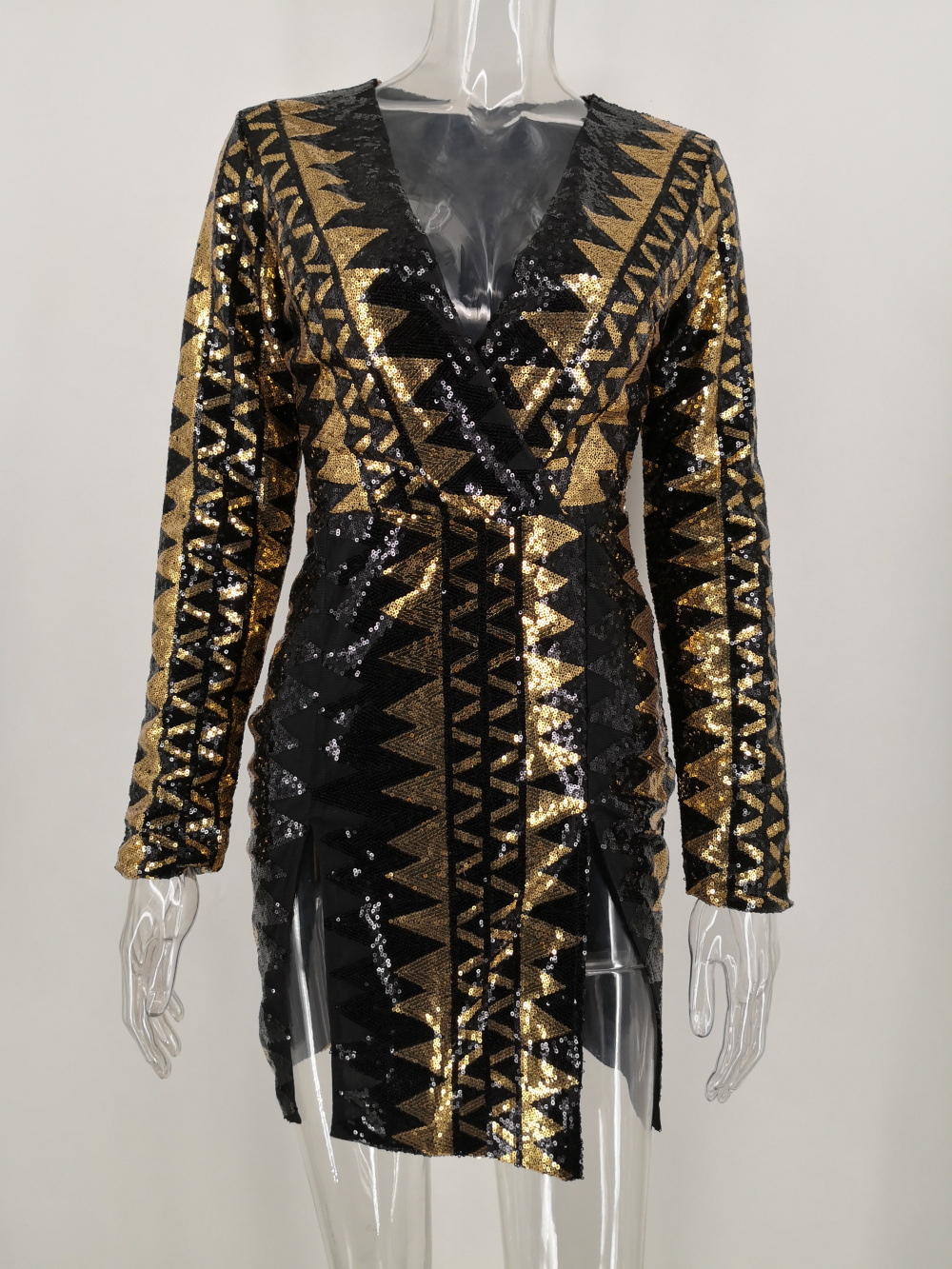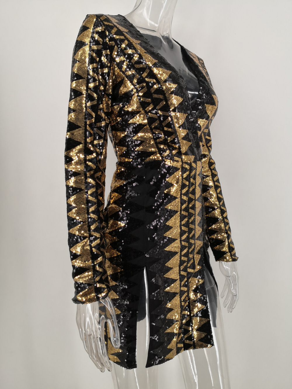 Women Clothing Sexy Long Sleeve Split Sequ Short Dress