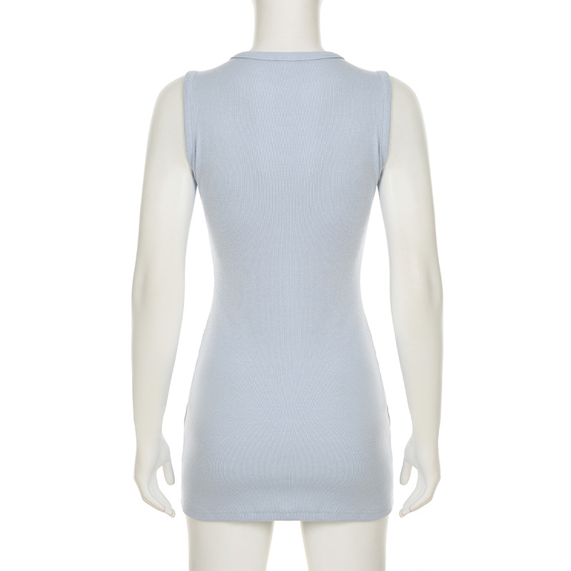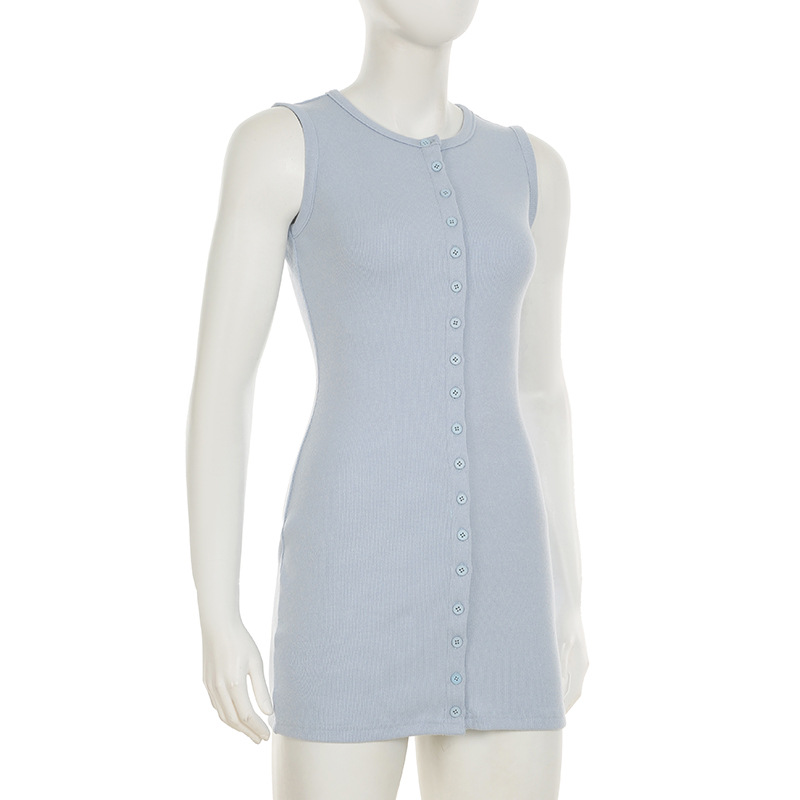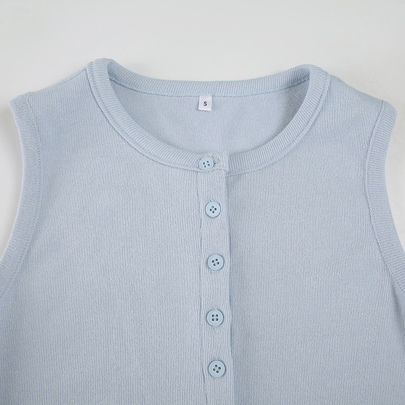 Women Clothing Solid Color Single Breasted Knitted Cardigan Vest Dress Simple Office Short Summer