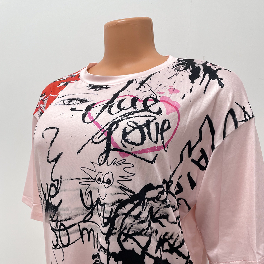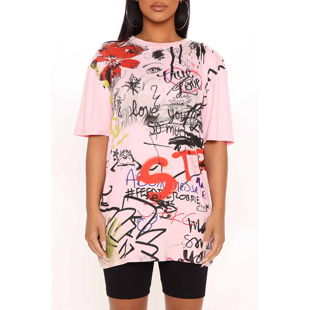 Women Clothing Sports Casual Women Long Loose Print T shirt