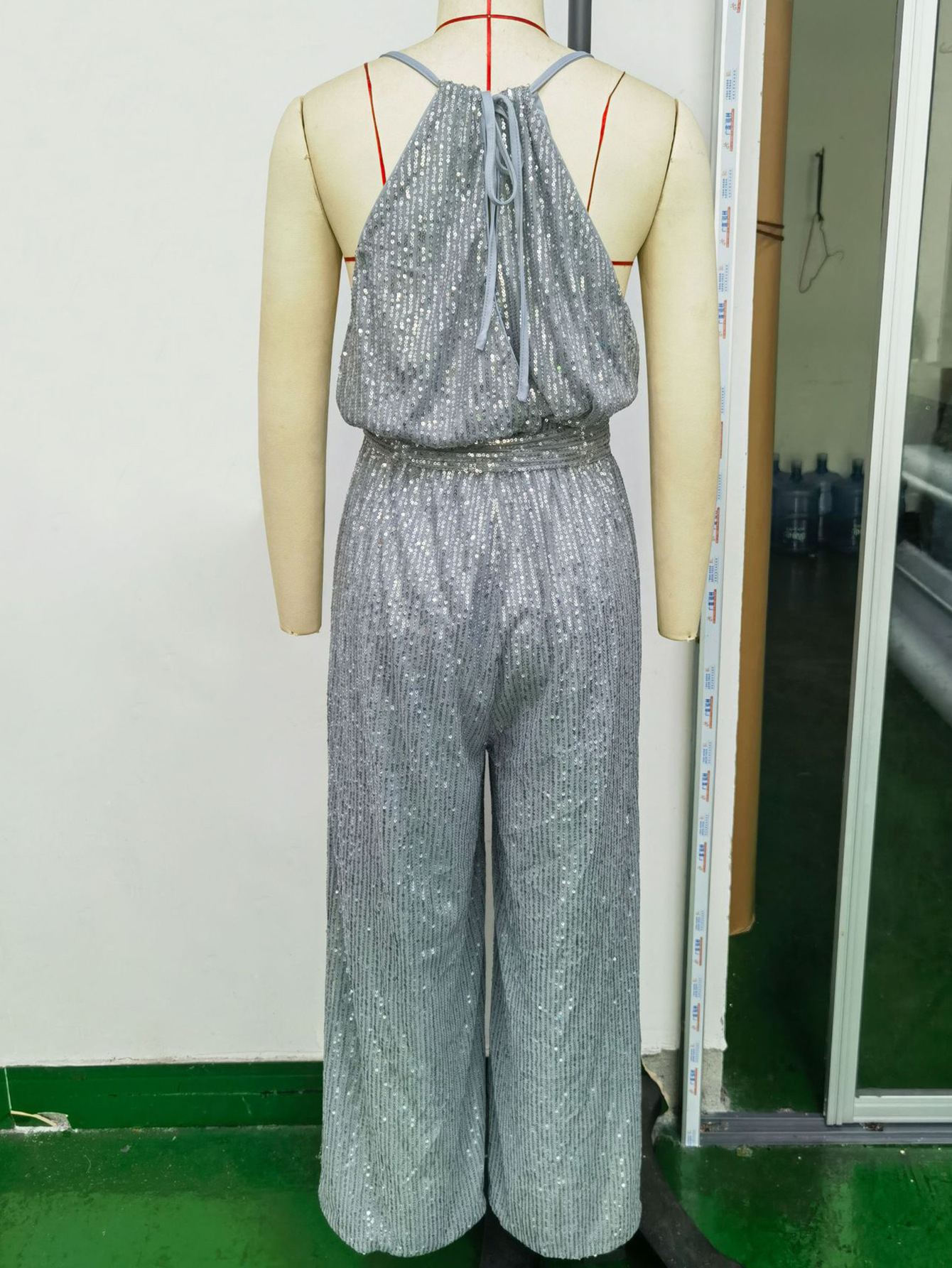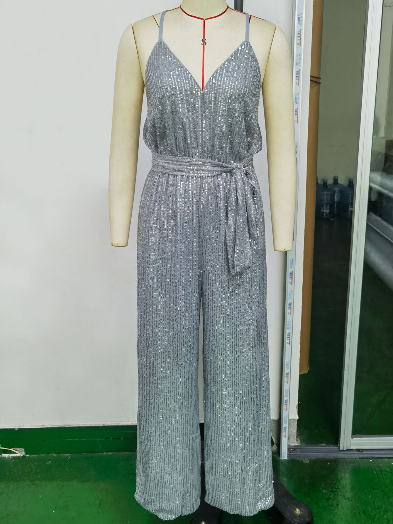 Women Clothing Street Jumpsuit Sexy Sequined Suspender Jumpsuit Trousers