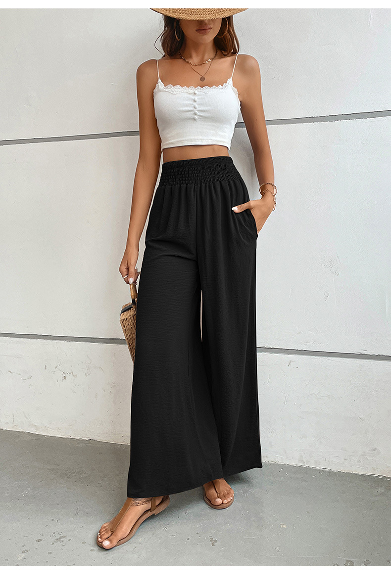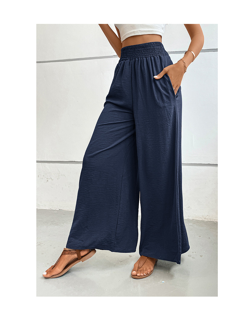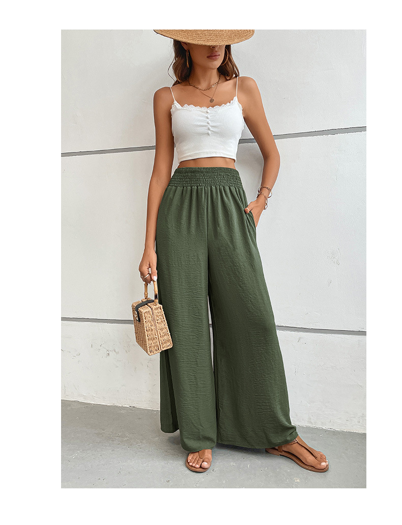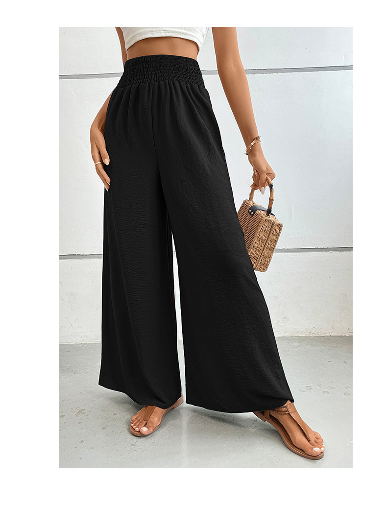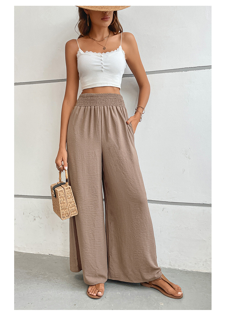 Women Clothing Summer Solid Color Flared Wide Leg Pants