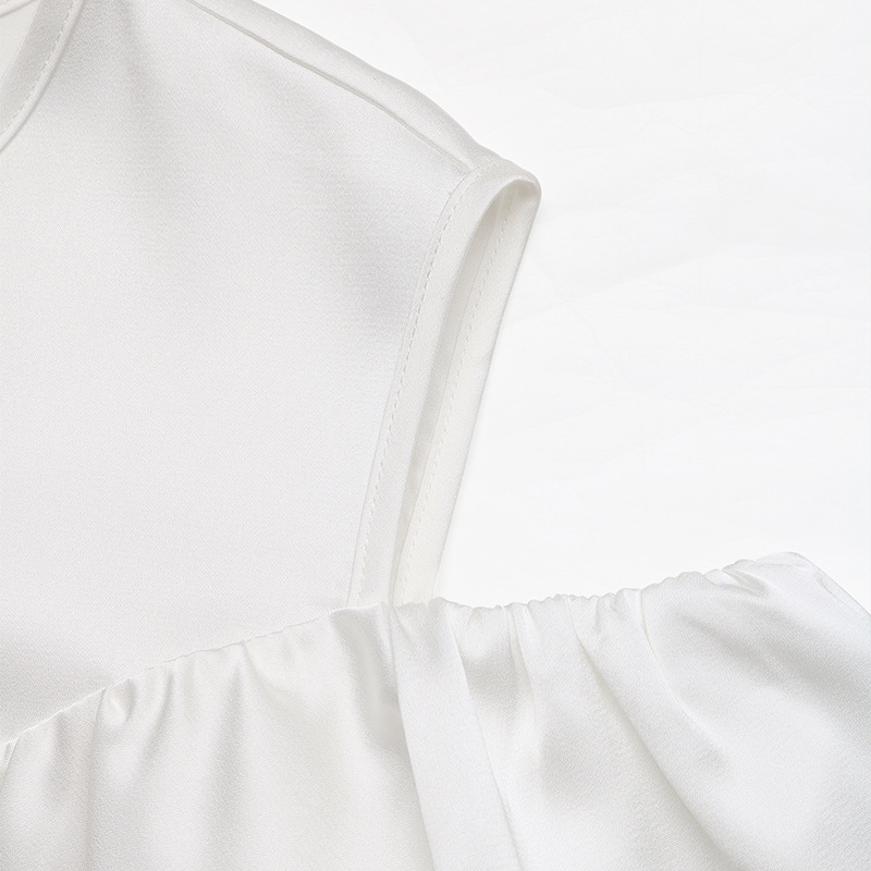 Women Clothing Top Autumn Elegant Long Sleeved Ruffled off the Shoulder Lace up Crew Neck Shirt