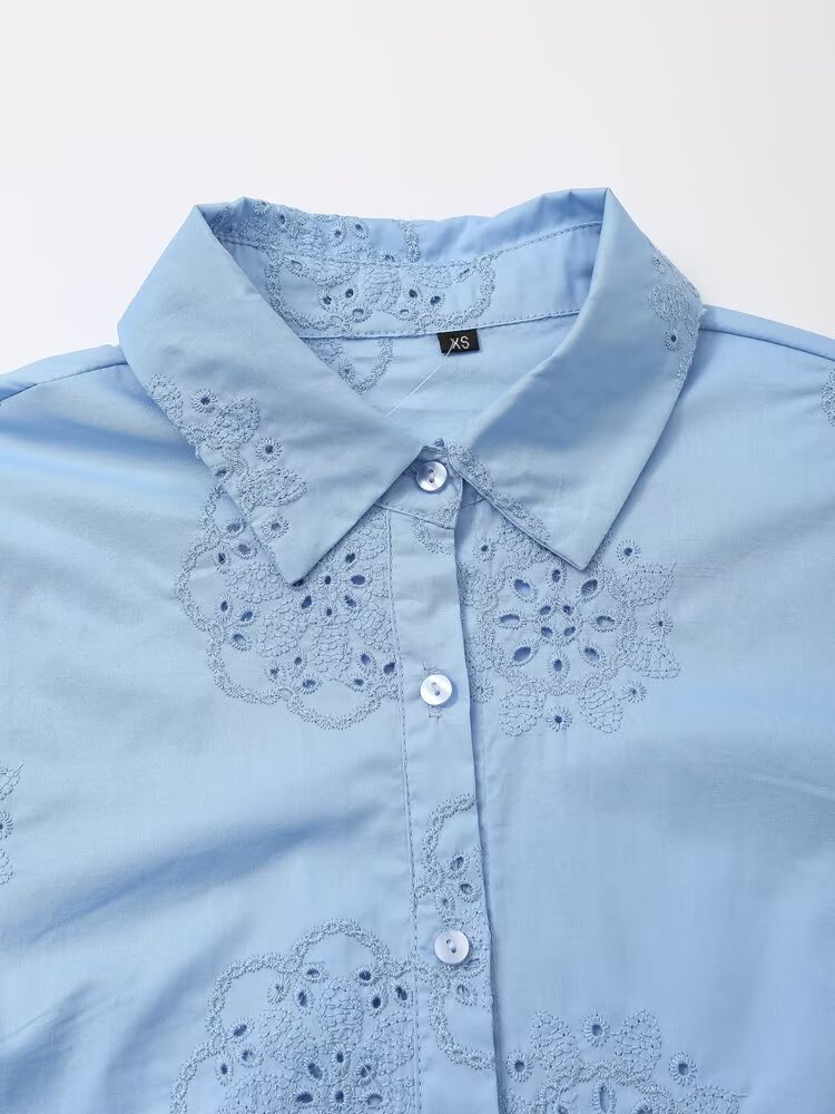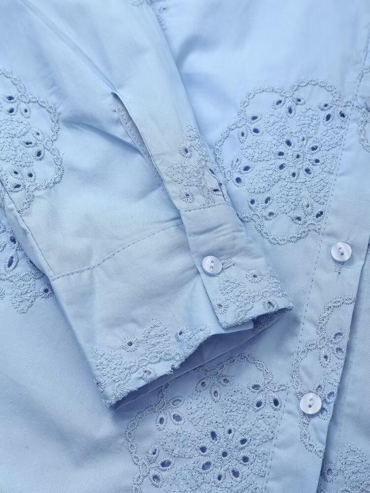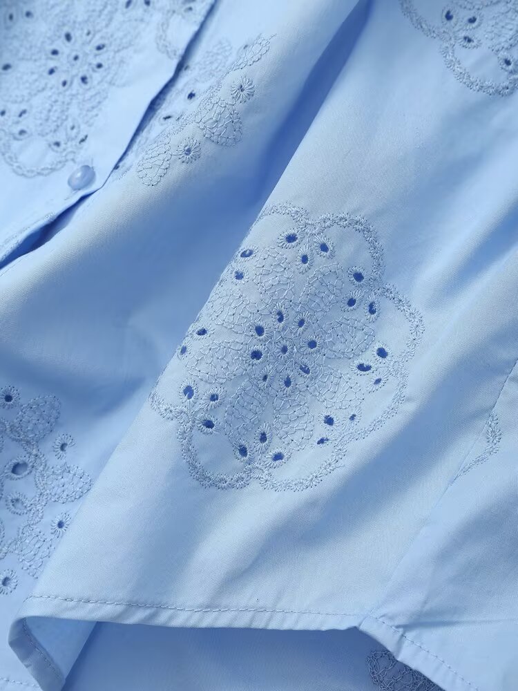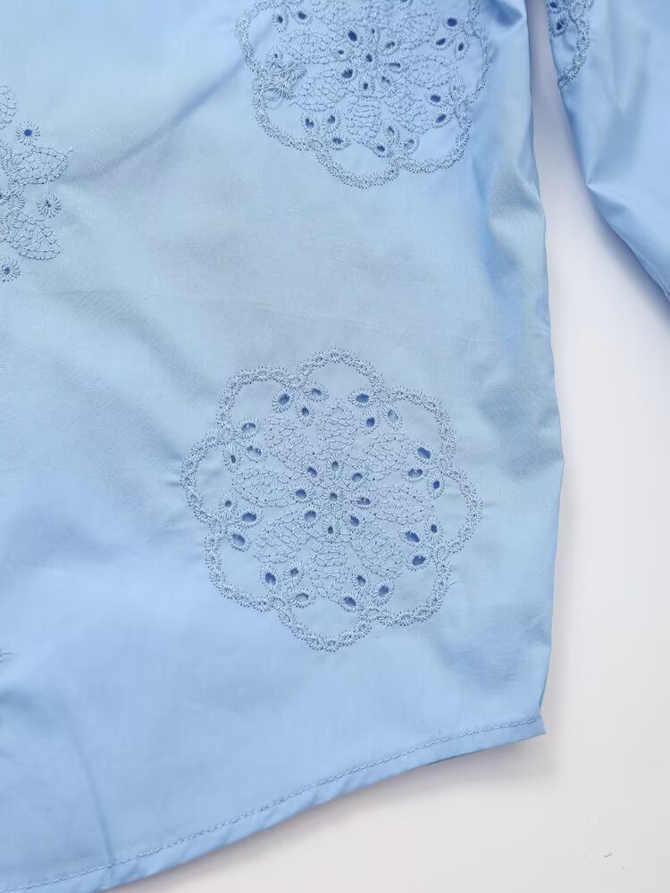 Women Clothing Top Product Embroidered Decorative Poplin Shirt
