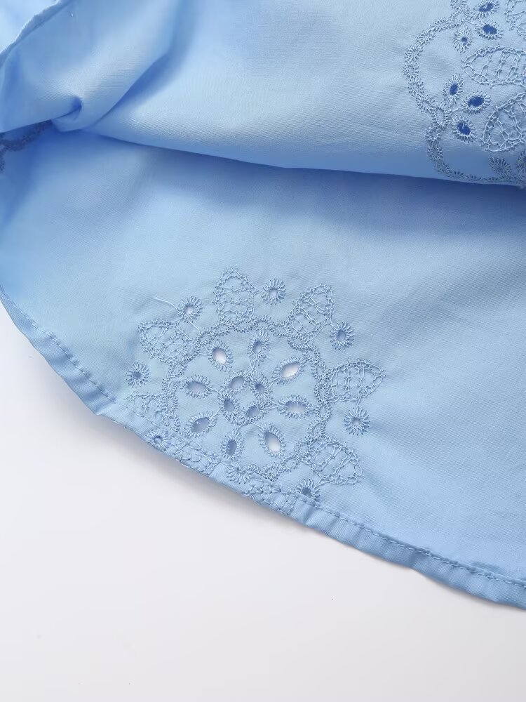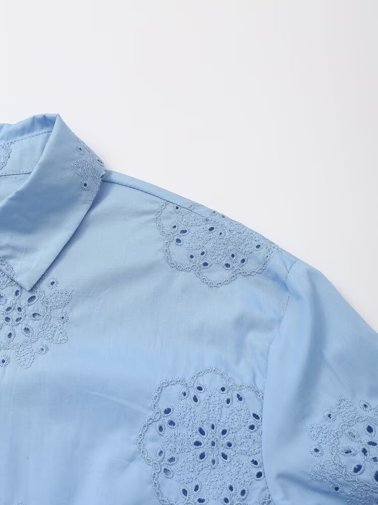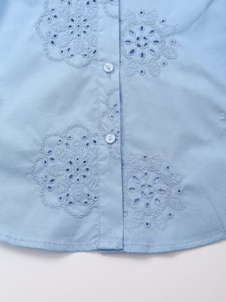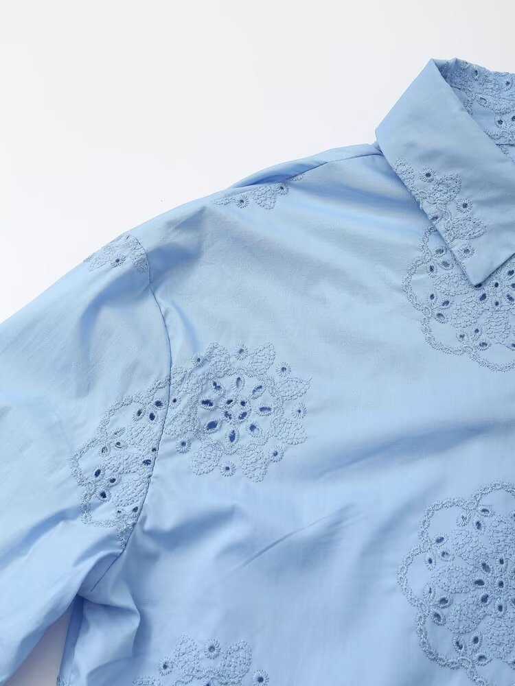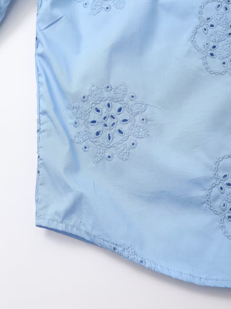 Women Clothing Top Product Embroidered Decorative Poplin Shirt