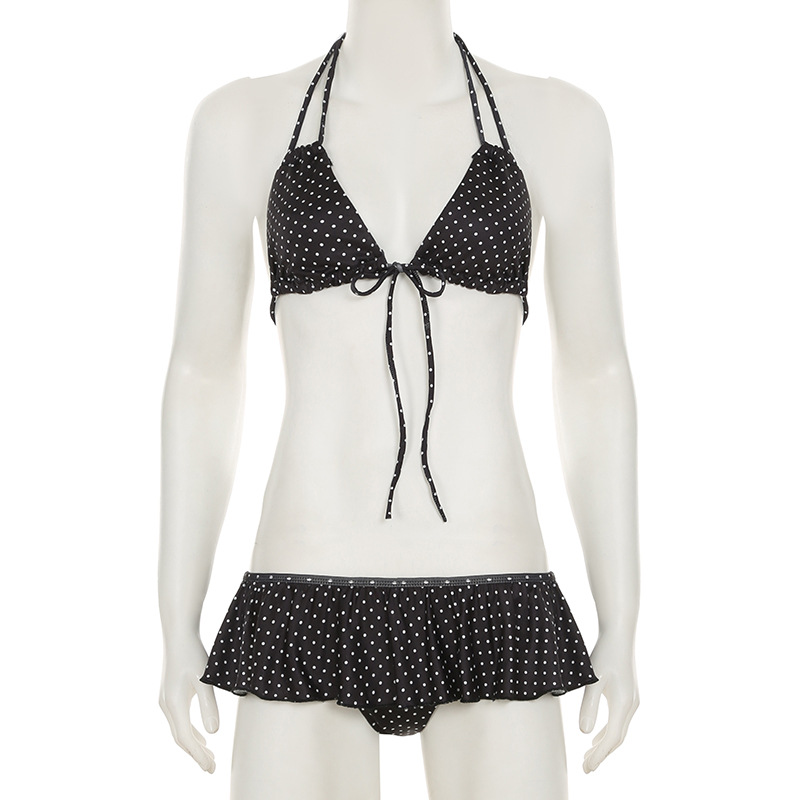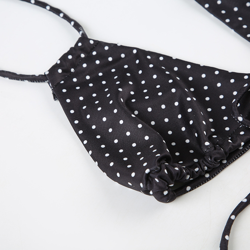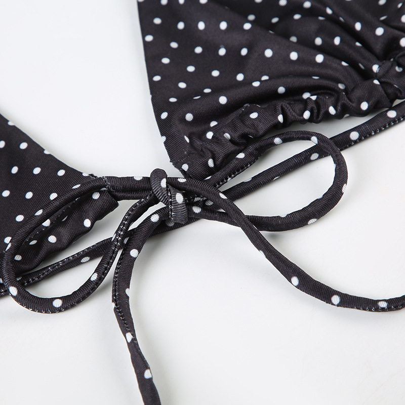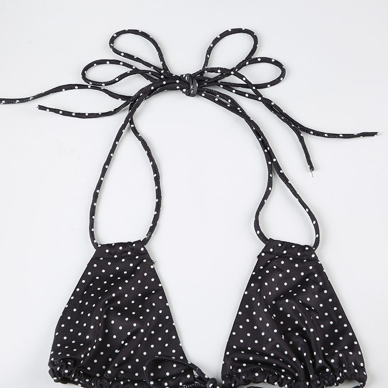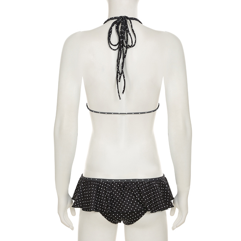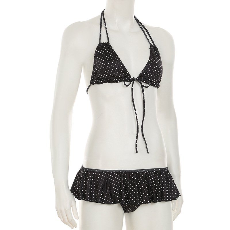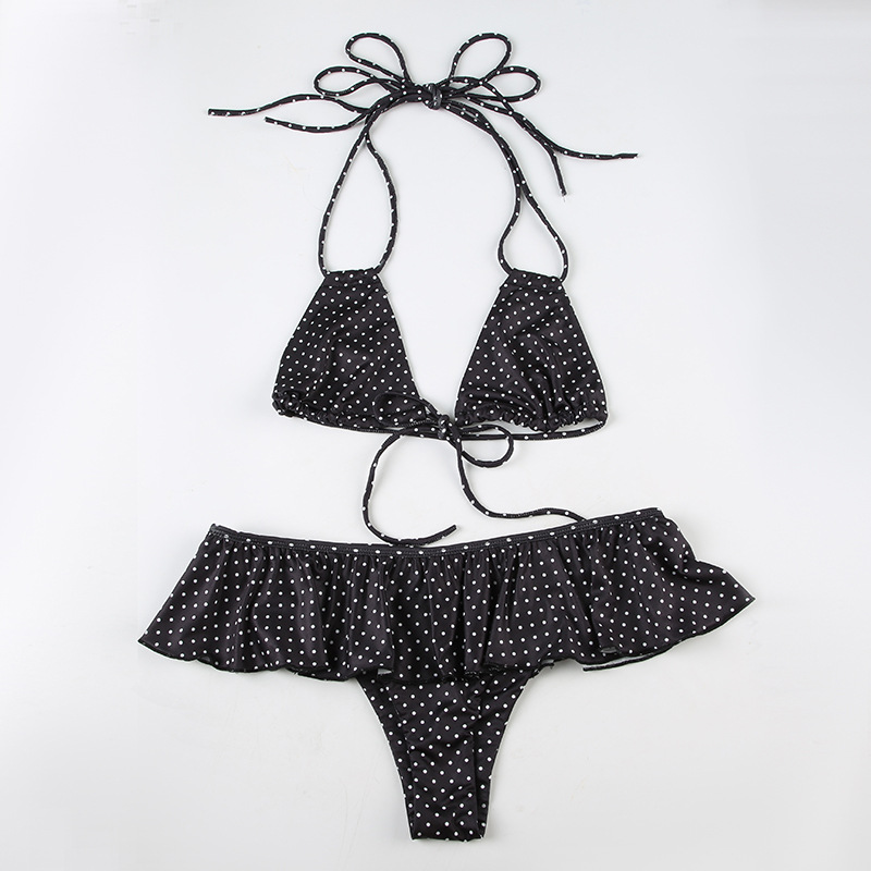Women Clothing Vacation Swimsuit Sexy Sexy Polka Dot Print Tied Lotus Leaf Split Bikini Two Piece Sets