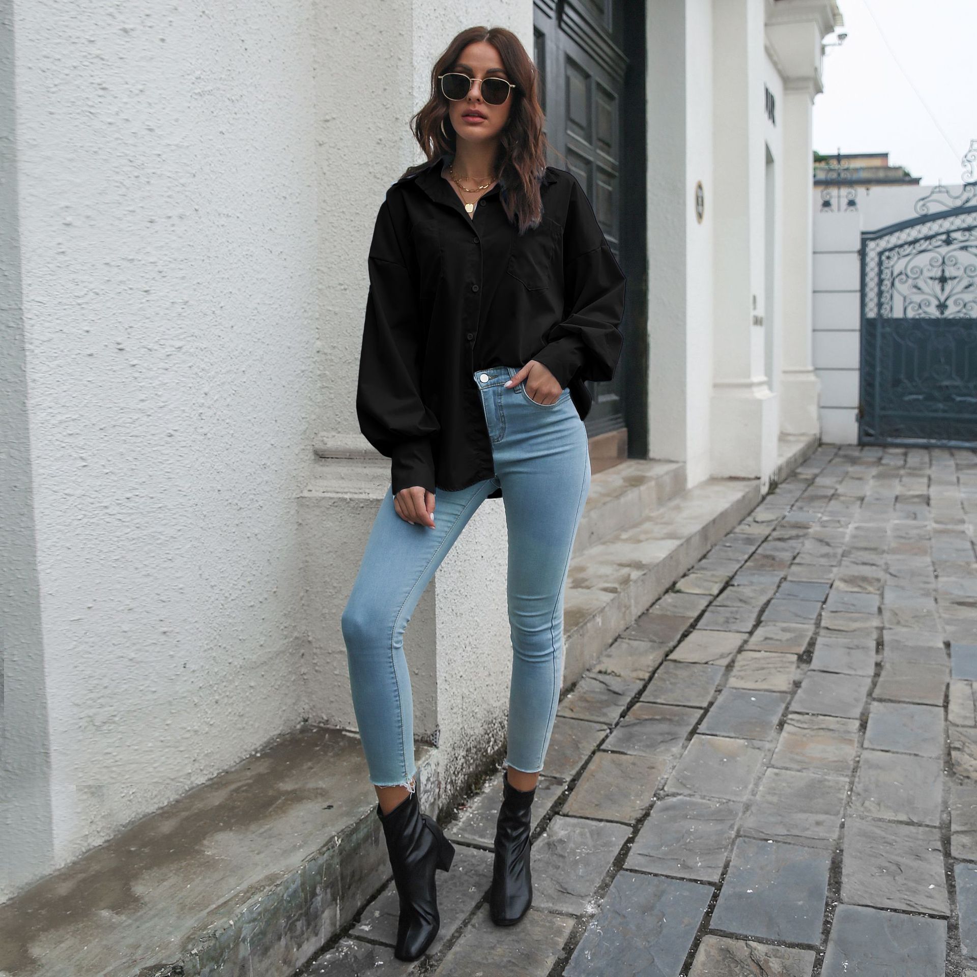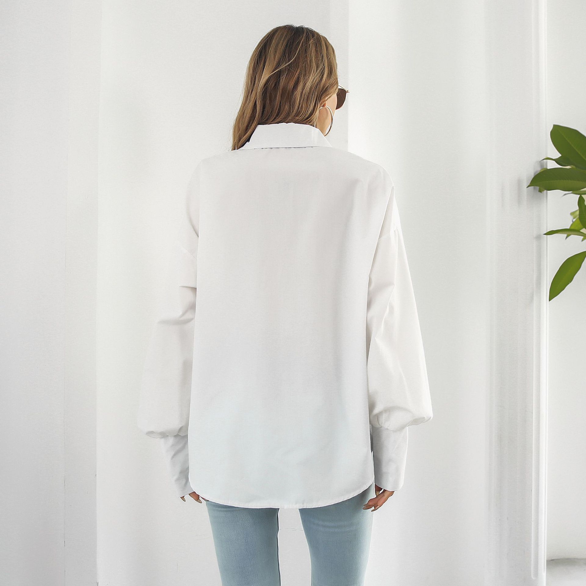 Women Cotton Lantern Sleeve Long Sleeve Mid Length Shirt Loose Shirt Top Spring Autumn Women Clothing