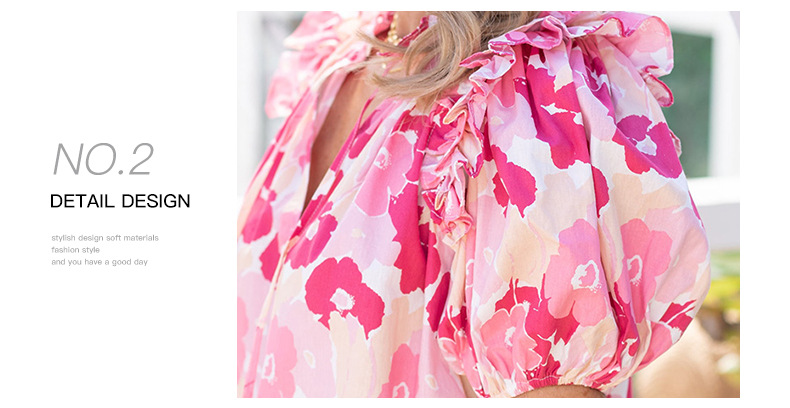 Women Floral Print Pullover Women Summer Puff Sleeve V neck Chiffon Top Women