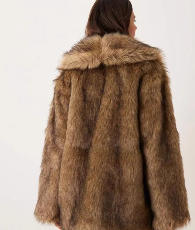 Women Fur Coat Imitation Raccoon Fur Mid Length Coat Faux Fur Long Sleeve Winter Warm Tops