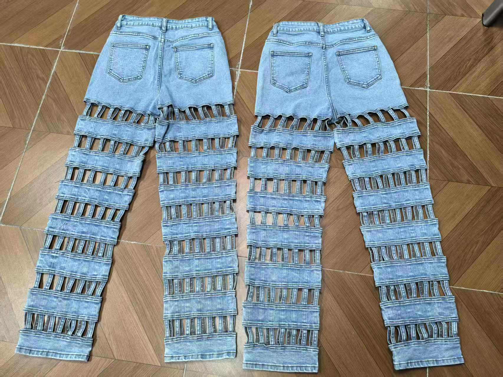 Women Ripped Jeans Women Clothing Street Hollowed out High Waist Straight Pants