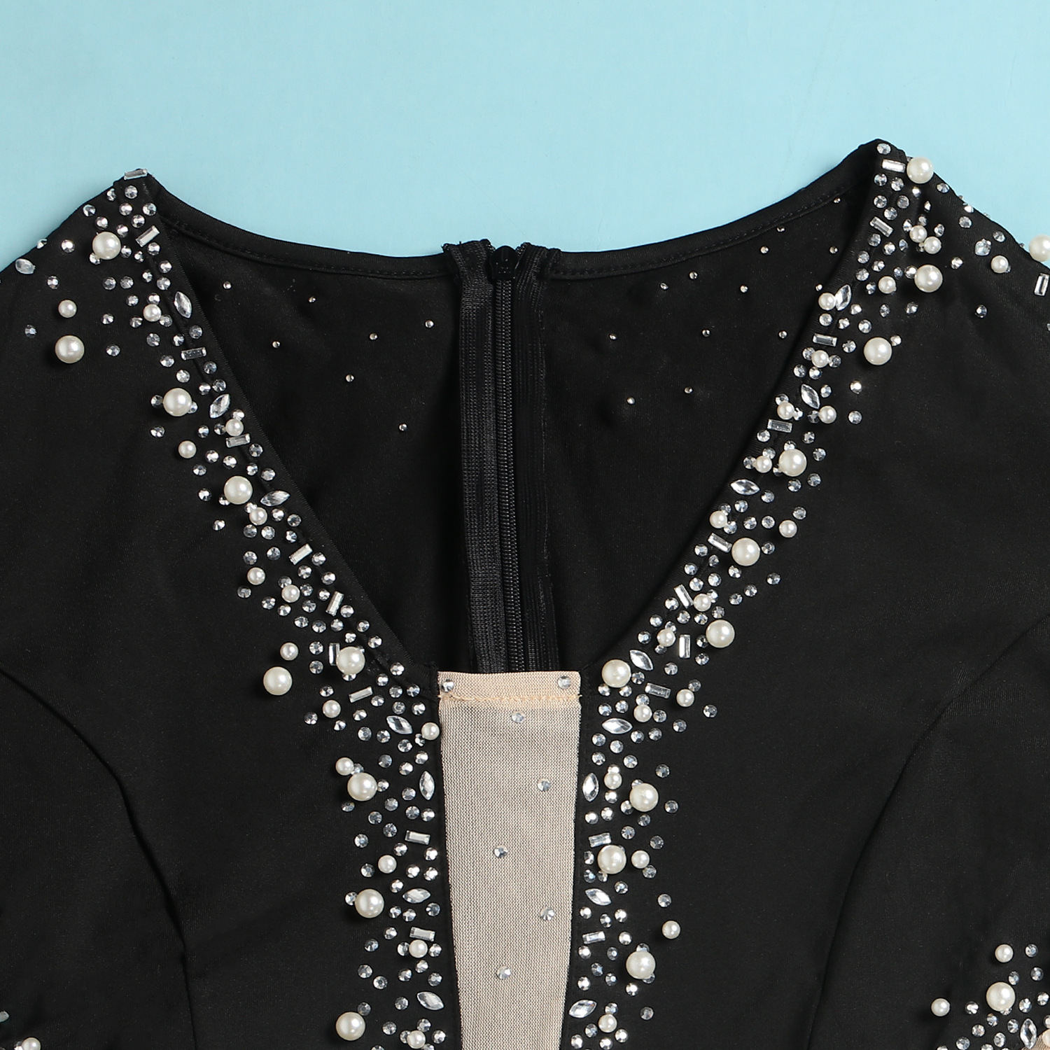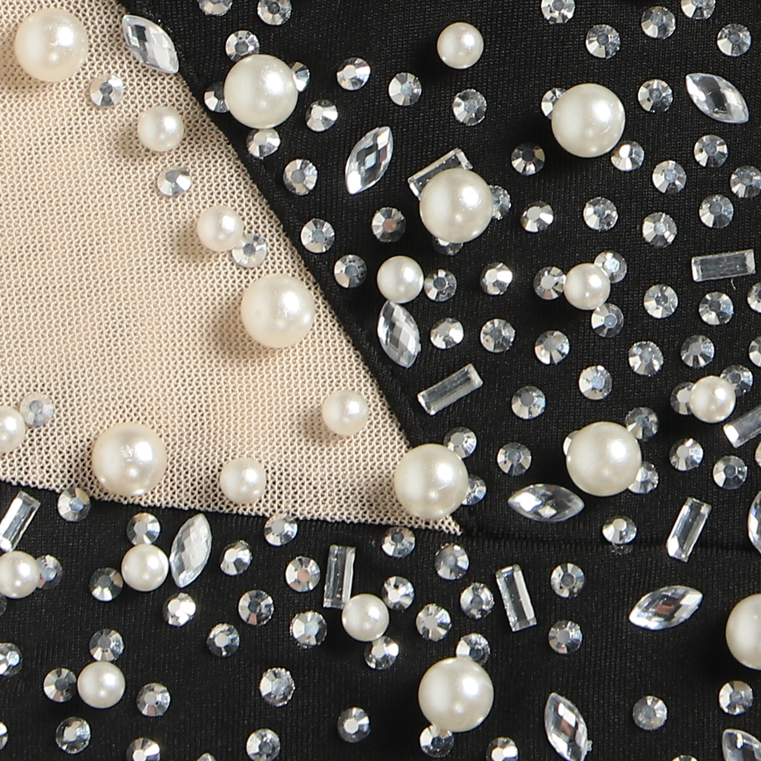 Women Sexy See through Rhinestone Pearl Jumpsuit