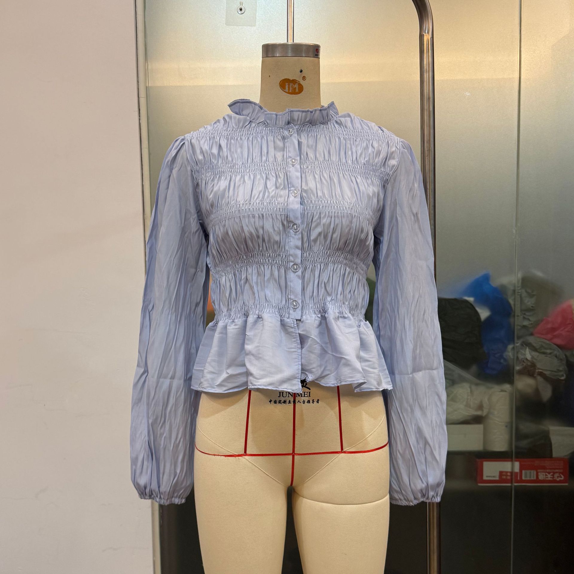 Women Solid Color Casual Button Slim Fit Cardigan Shirt Puff Sleeve Top