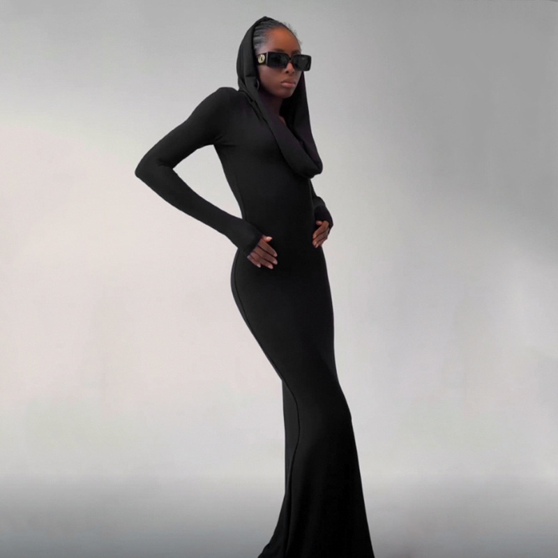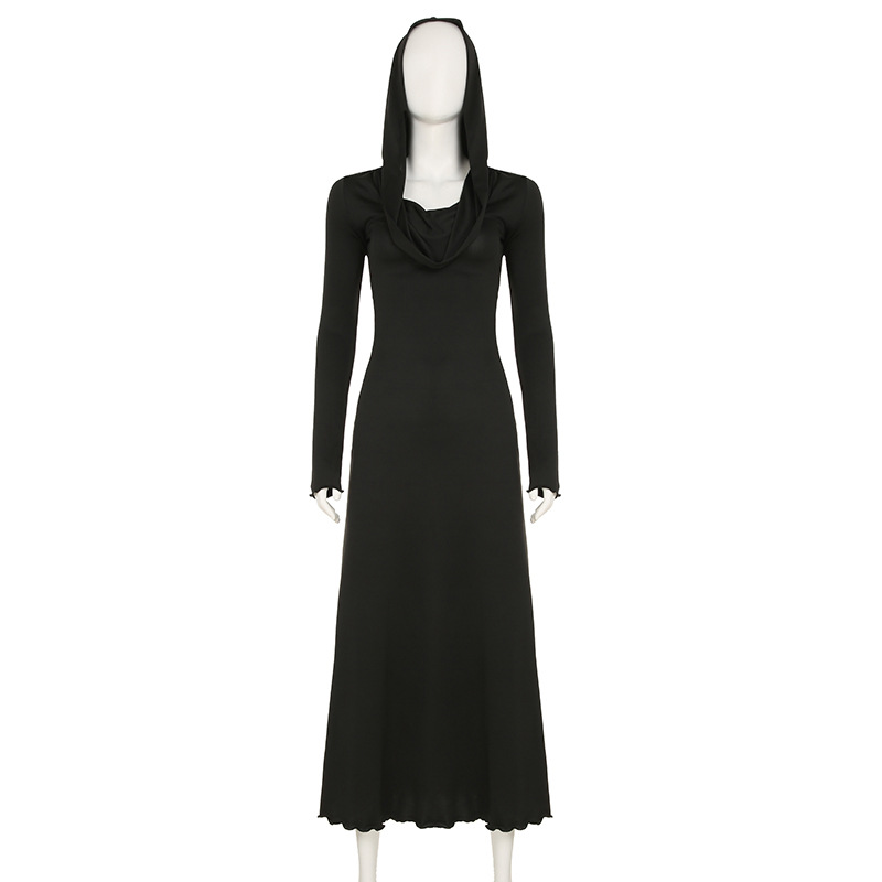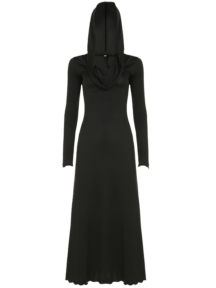 Women Solid Color Hooded Long Sleeve Dress Party Sexy Dress