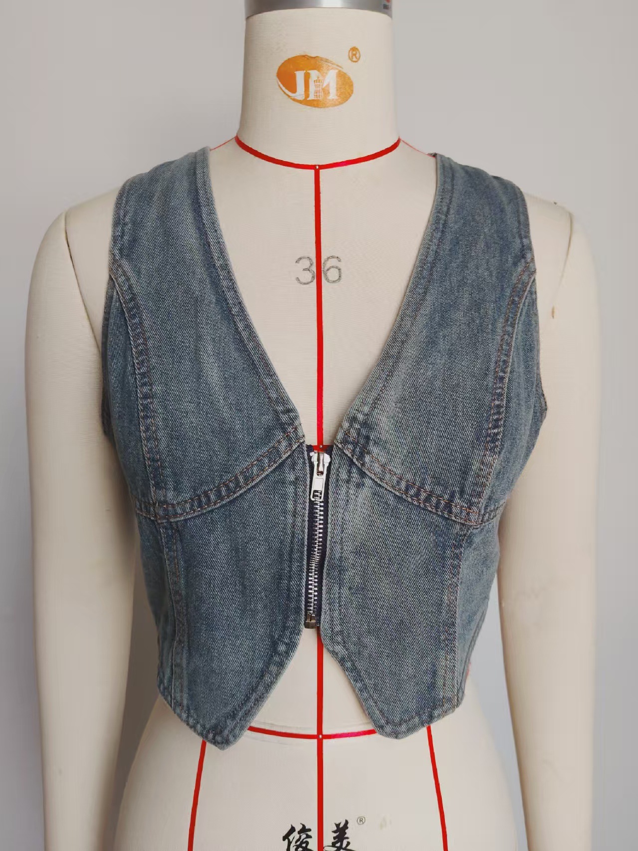 Women Washed Zipper Denim Short Vest