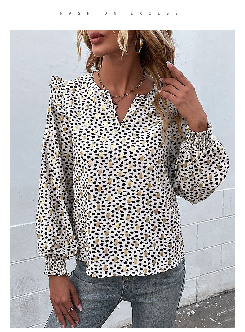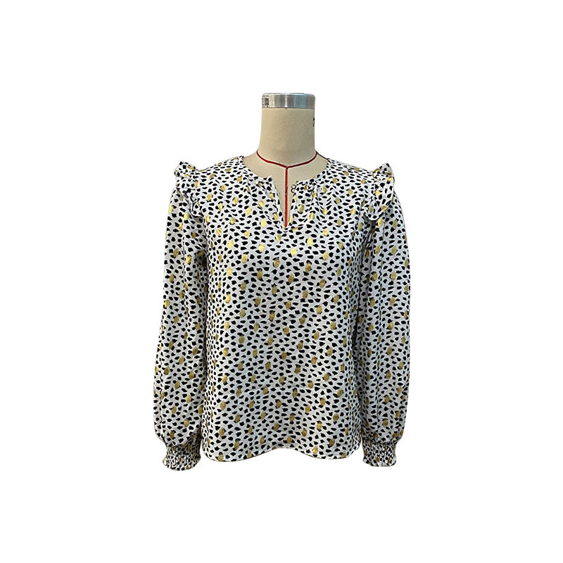 Women Wear Long Sleeve Bronzing Ruffled Shirt