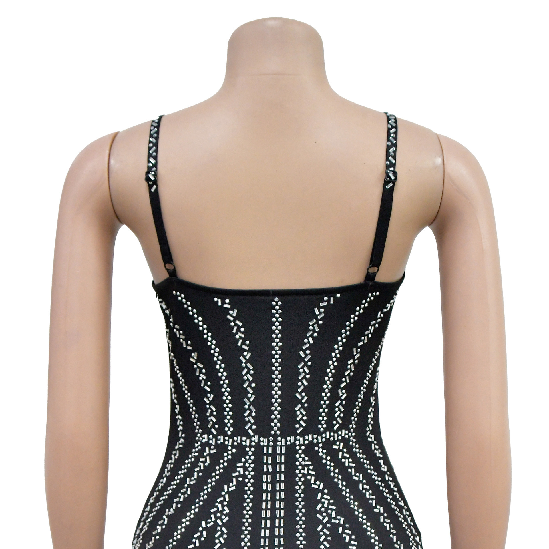 Women Wear Solid Color Chest Wrapped Rhinestone Strap Maxi Dress
