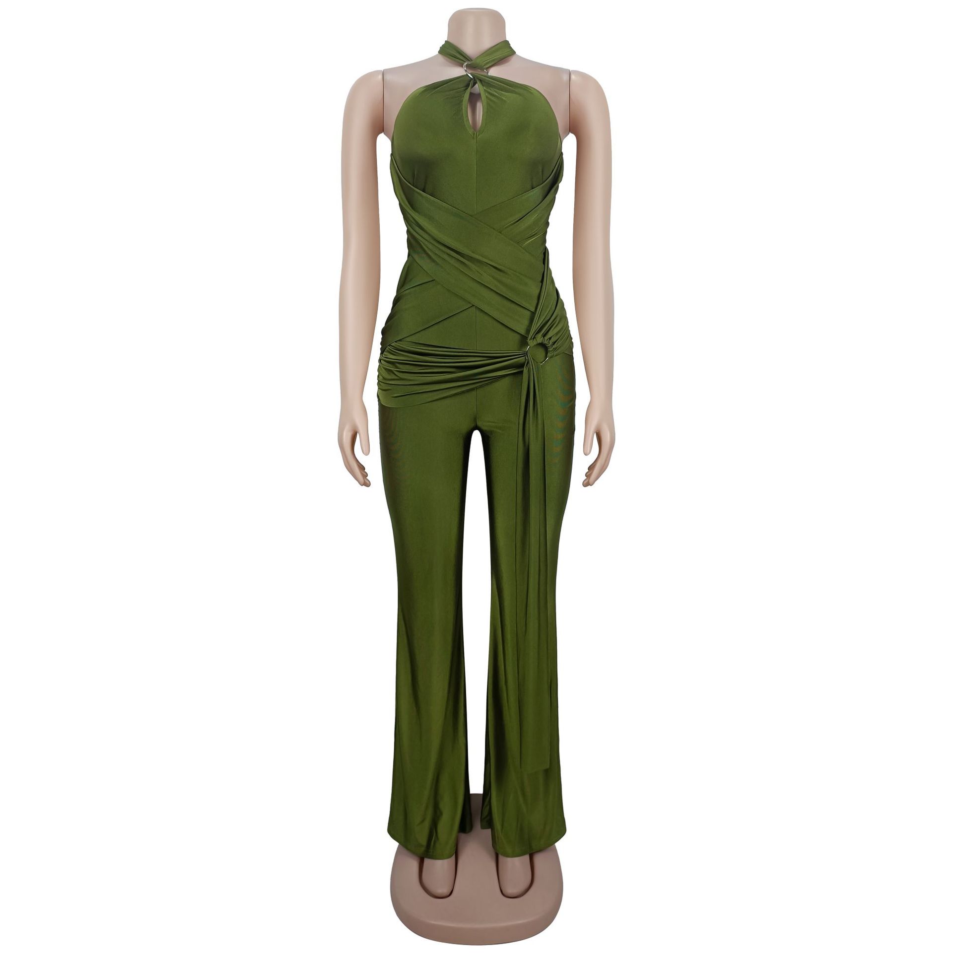 Women Wear Solid Color Elegant Halter Wide Leg Arm Covering Jumpsuit