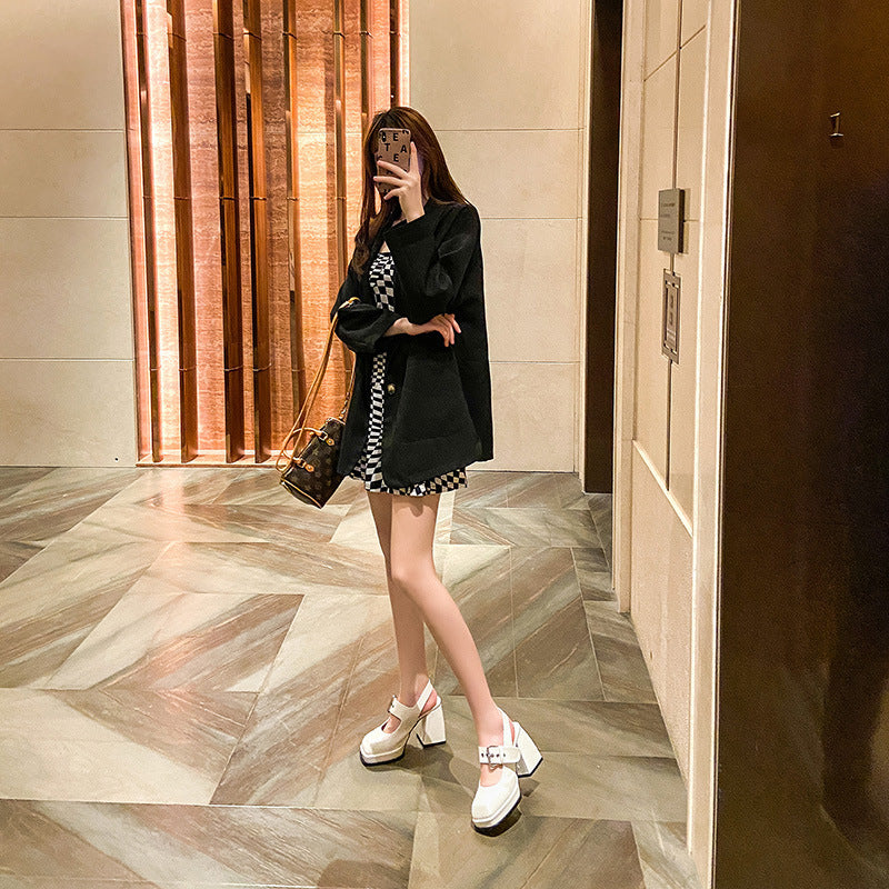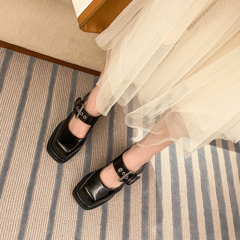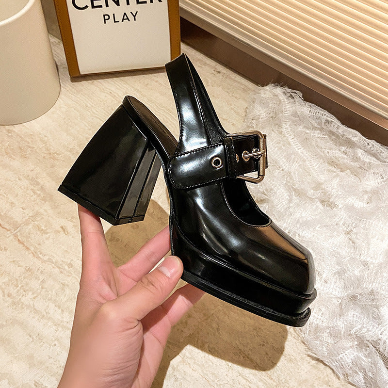 Women's New White Thick Heel Square Toe French High Heel Sandals