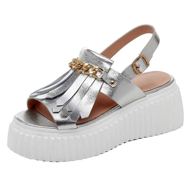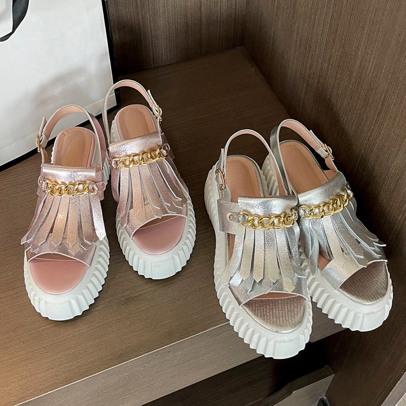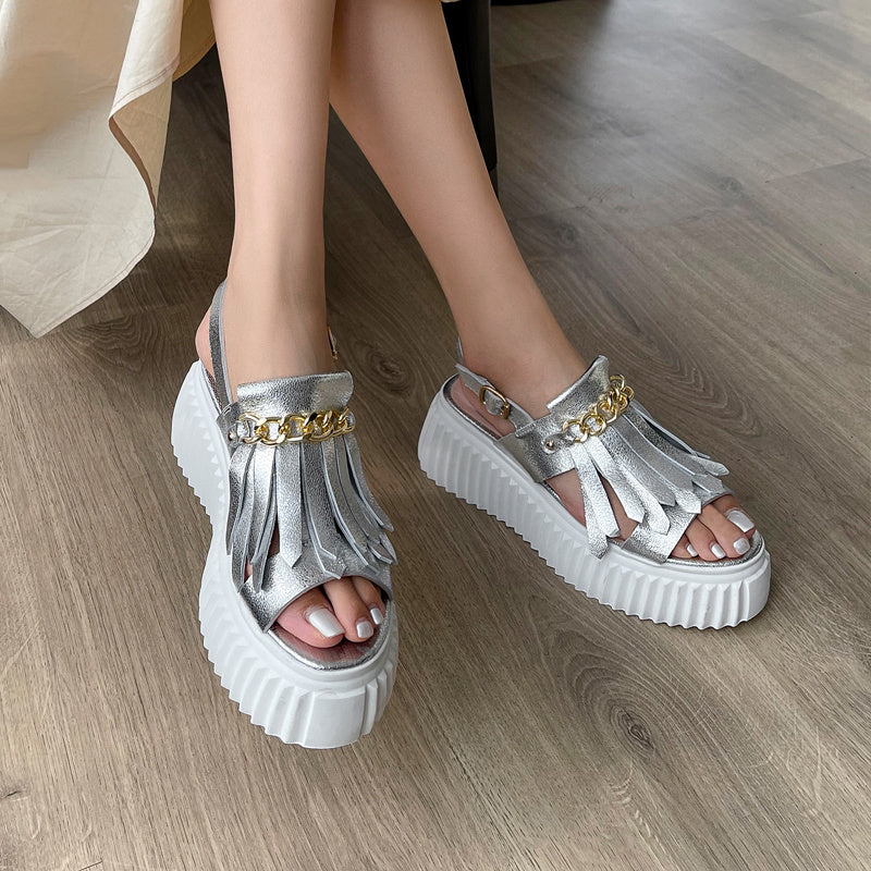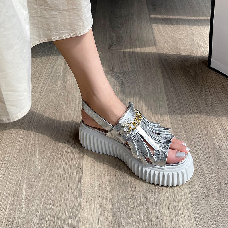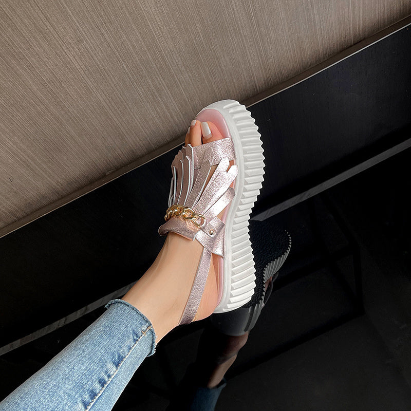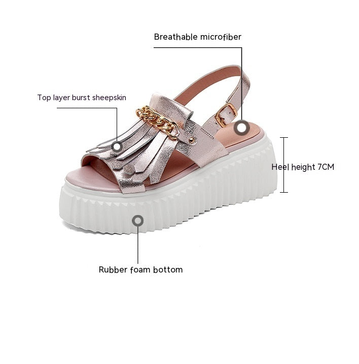 Women's Thick-soled Sandals With Small Height Increasing Tassels Summer